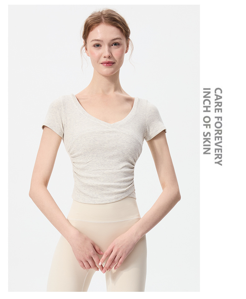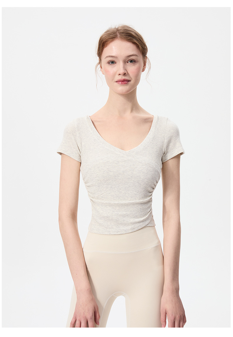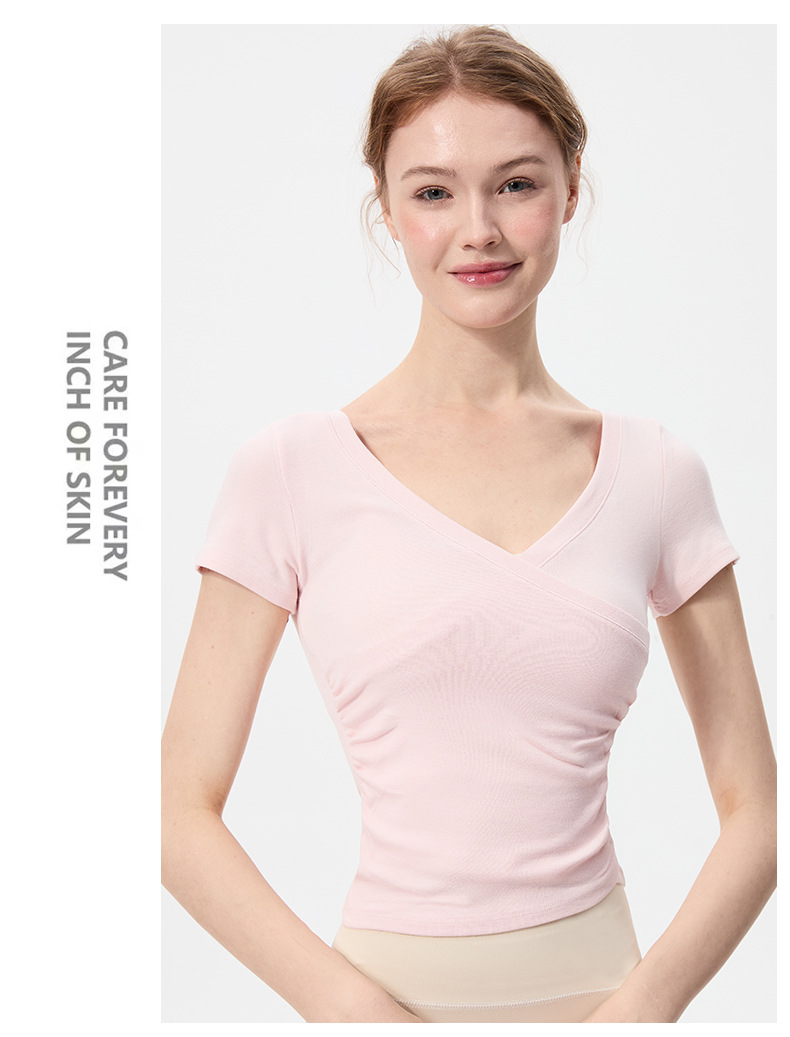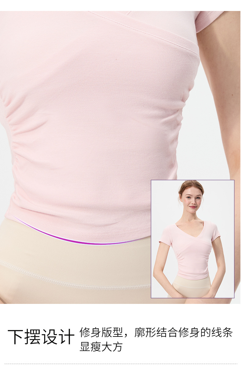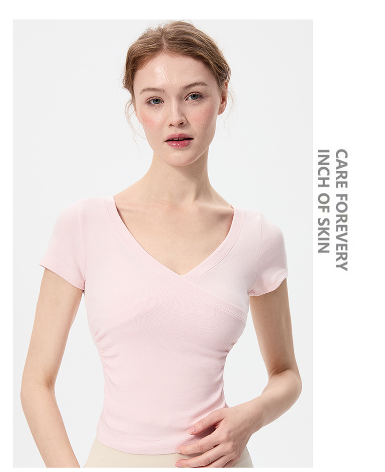 이른 봄 새로운 섹시한 크로스 오버 V 넥 요가 탑 여성용 슬림 핏 슬리밍 스포츠 티셔츠 빠른 건조 달리기 피트니스 옷