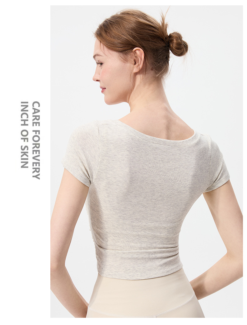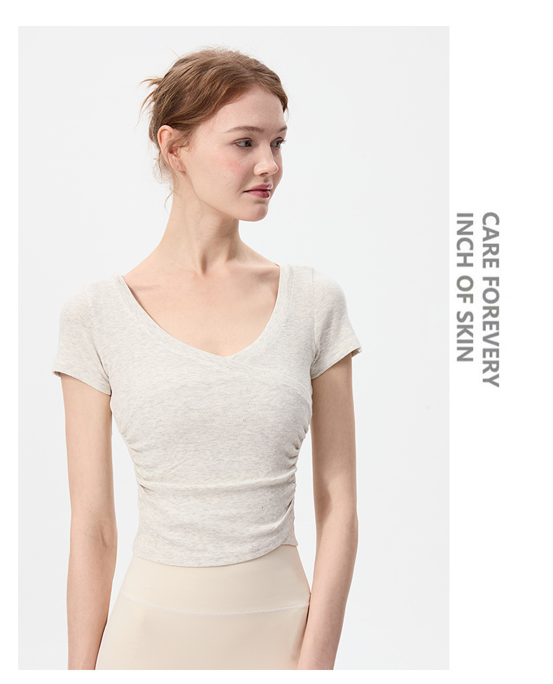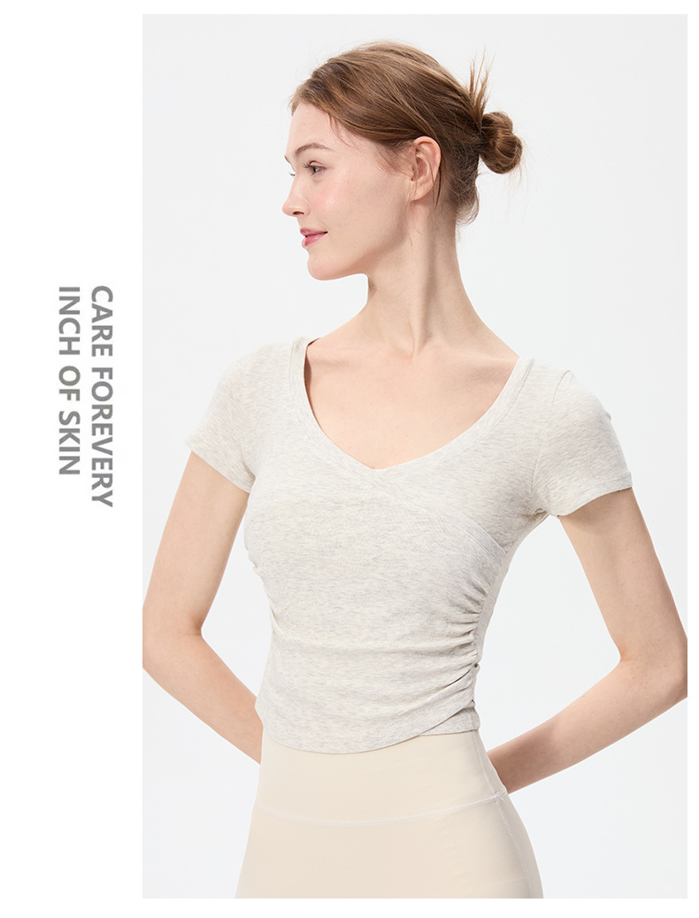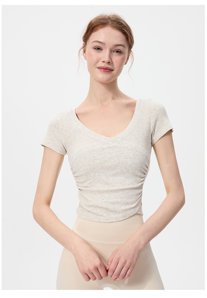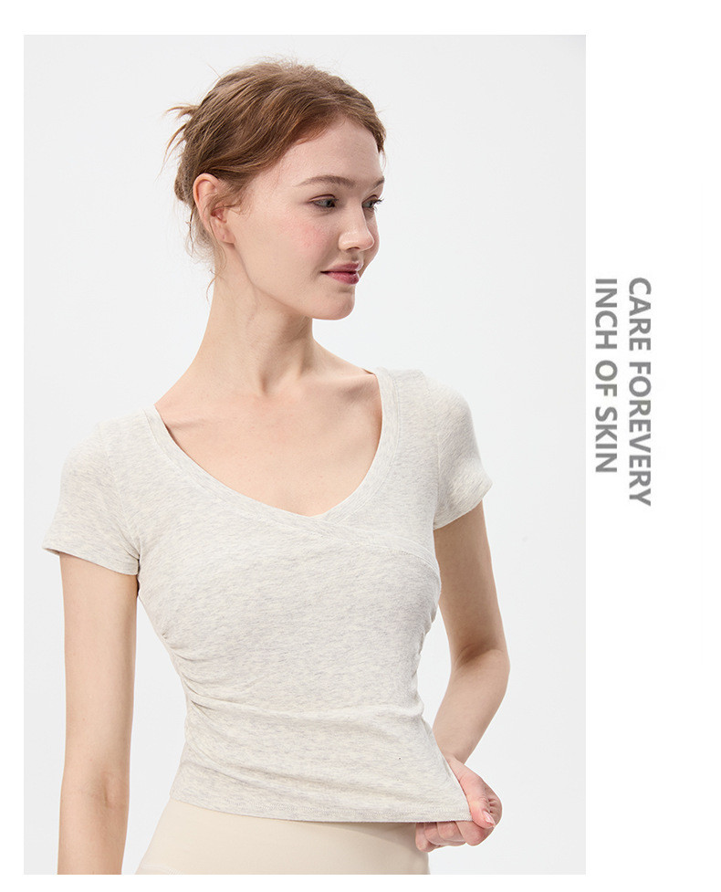 이른 봄 새로운 섹시한 크로스 오버 V 넥 요가 탑 여성용 슬림 핏 슬리밍 스포츠 티셔츠 빠른 건조 달리기 피트니스 옷
