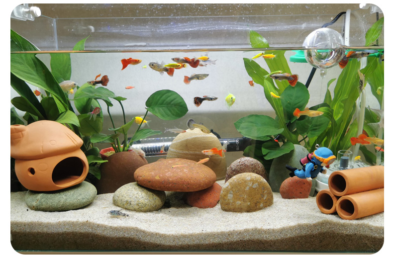 자연 양쯔강 유색 돌 물고기 항아리 돌 풍경 장식 돌 장식 컬러 자갈 장식품 쌓인 돌 물 잔디 도자기