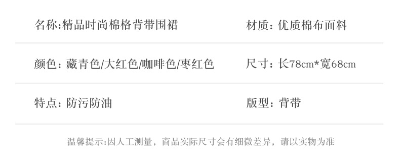 성인용 방수 패셔너블 면 체크 서스펜더 앞치마 Hangli 면 앞치마 주방 아웃도어 방진 및 방오 대폭 할인스토어 가기