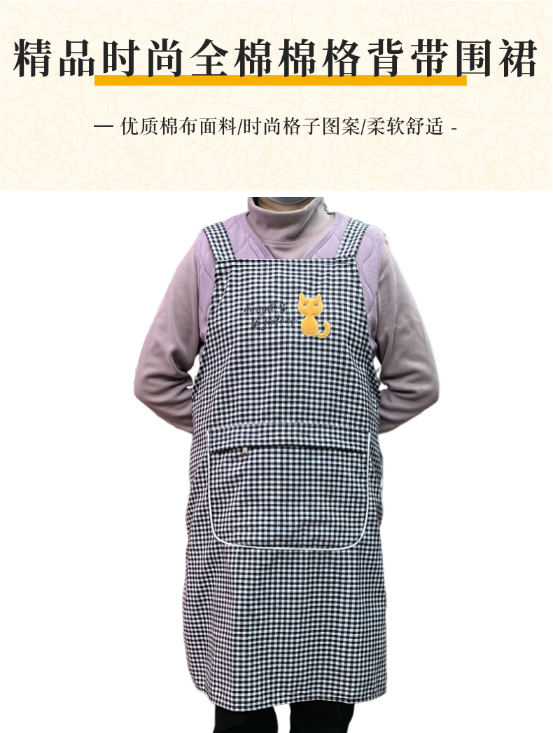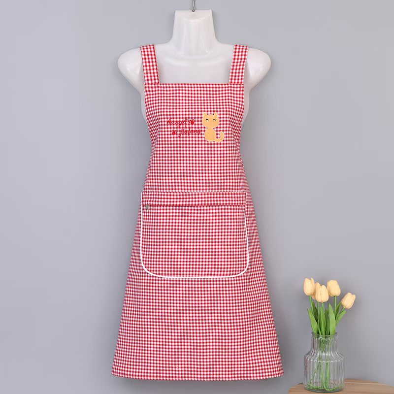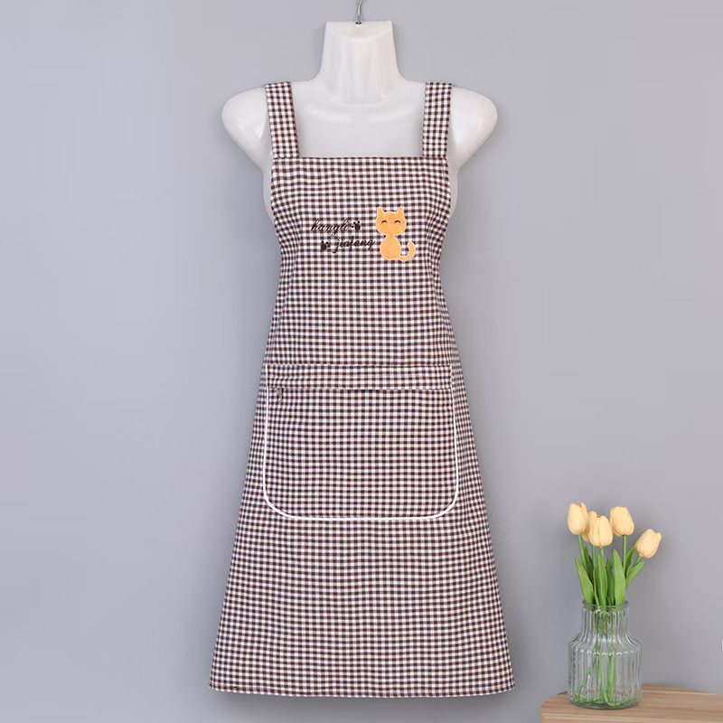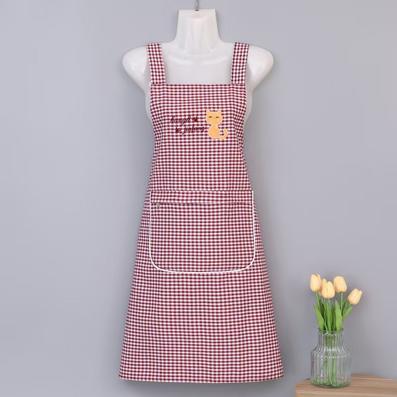 성인용 방수 패셔너블 면 체크 서스펜더 앞치마 Hangli 면 앞치마 주방 아웃도어 방진 및 방오 대폭 할인