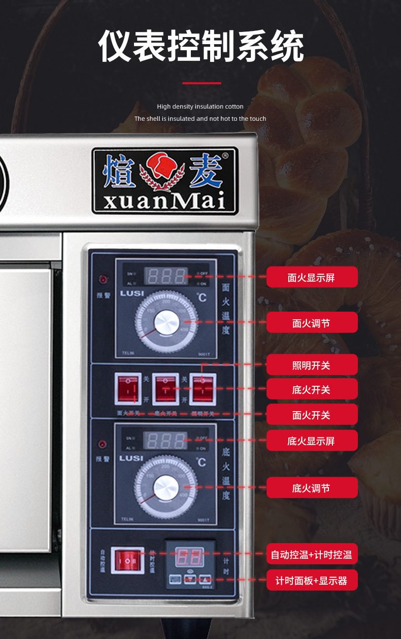 지능형 시간 제한 전기 오븐 1 층 이중 플레이트 피자 오븐 케이크 스콘 베이킹 대용량 토스터 상업용