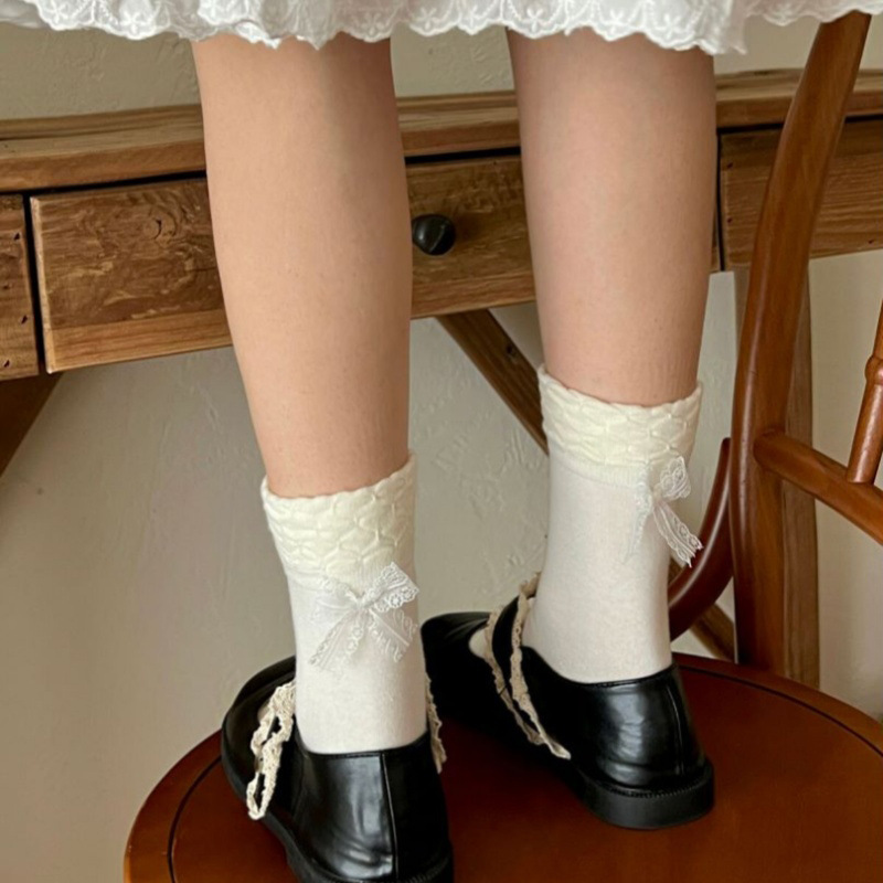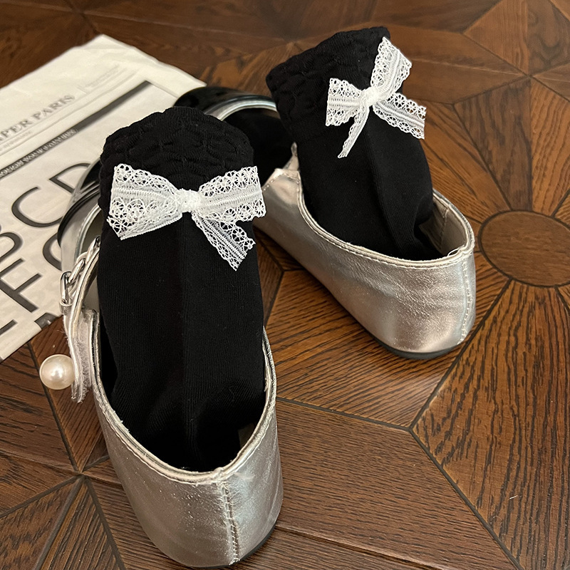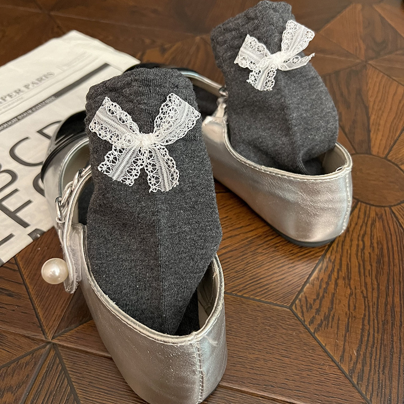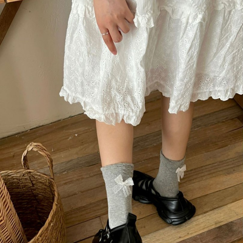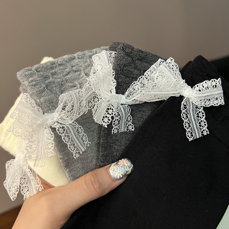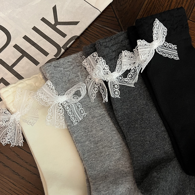 한국 스타일 새로운 스타일 레이스 발레 활 장식 검은 색과 흰색 및 회색 스타일 인기있는 온라인 스타일 면 양말 어린이를위한 중간 길이 양말스토어 가기