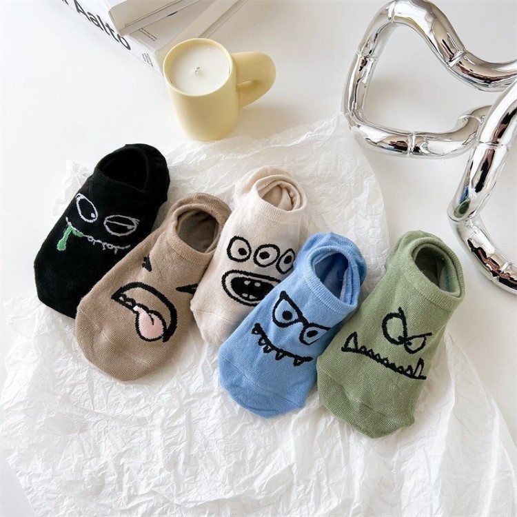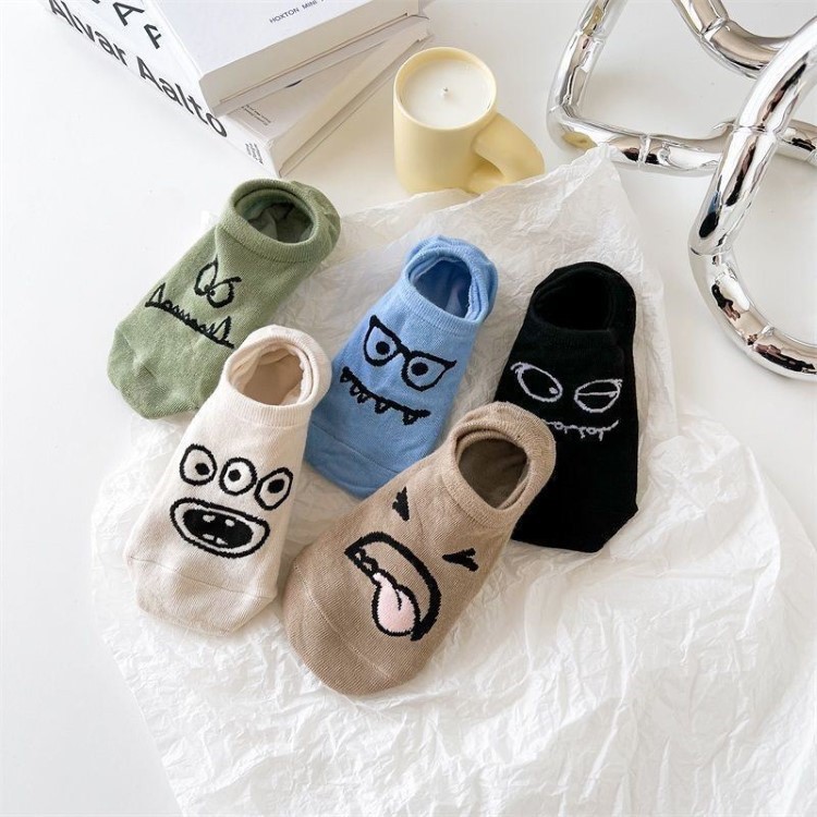 5 쌍의 만화 재미 보트 양말 여성 양말 여름 얇은 보이지 않는 얕은 입 일본 스타일 귀여운 짧은 양말스토어 가기