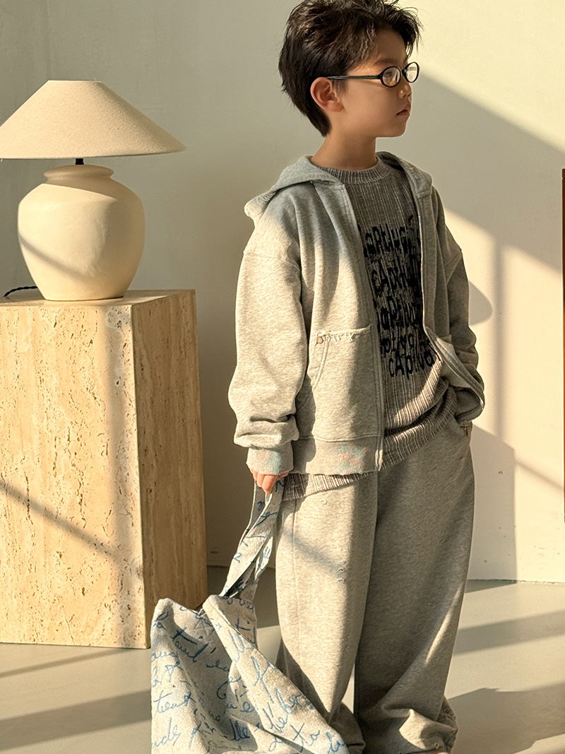 소년 세트 봄과 가을 2025 새로운 더피 잘 생긴 한국 투피스 어린이 서양식 캐주얼 땀 스포츠 바지스토어 가기