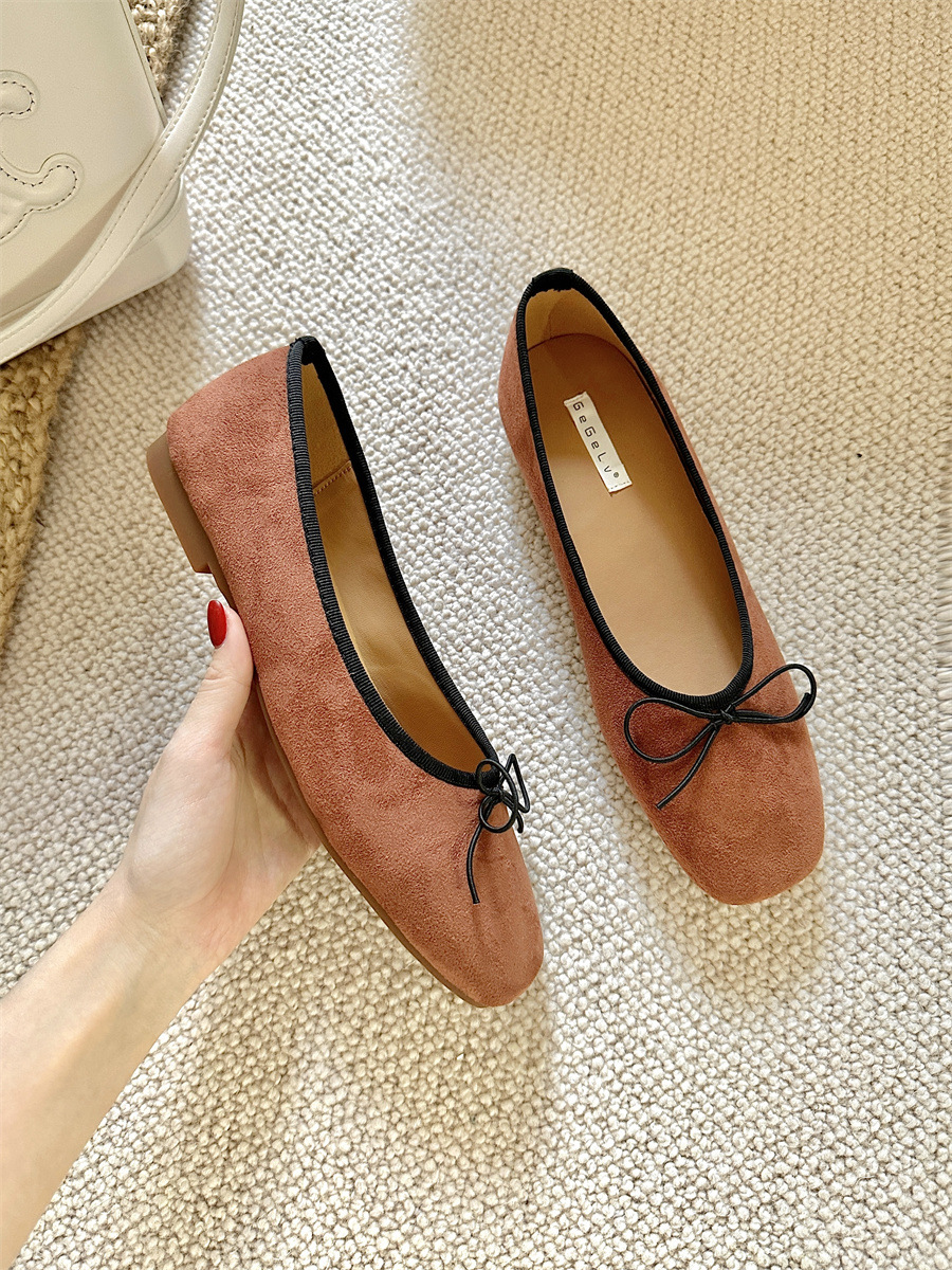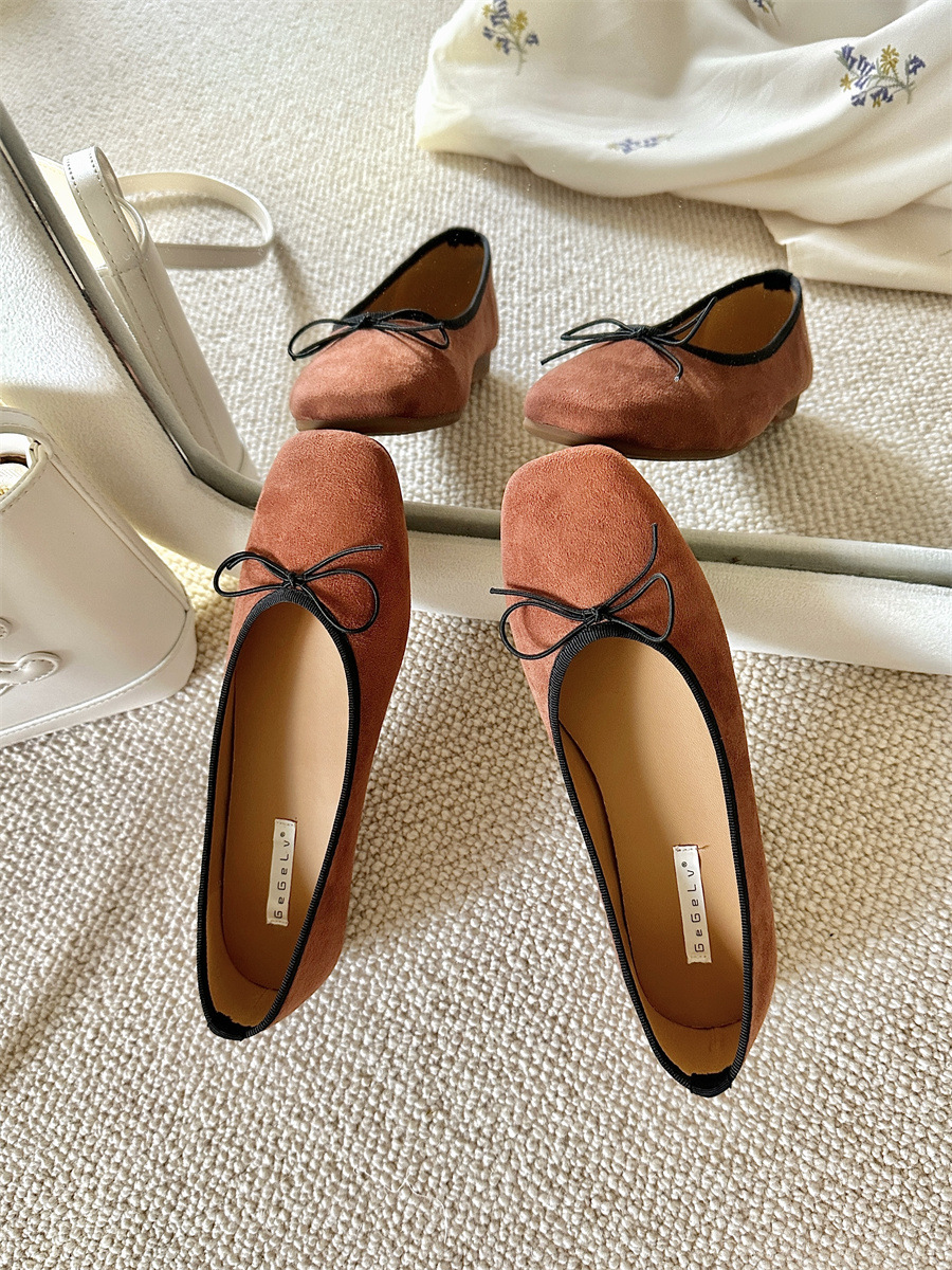 프랑스 스타일 스퀘어 발가락 얕은 입 플랫 싱글 레이어 신발 여성의 2025 새로운 도착 활 소프트 하단 레트로 레드 발레 신발스토어 가기