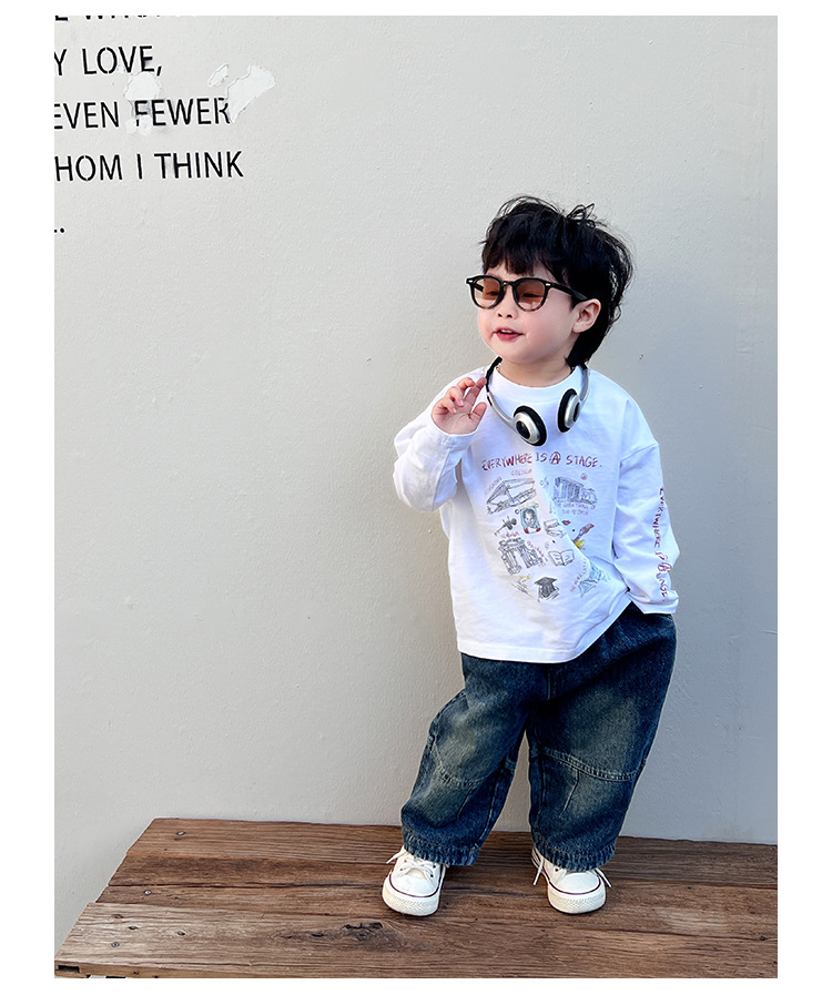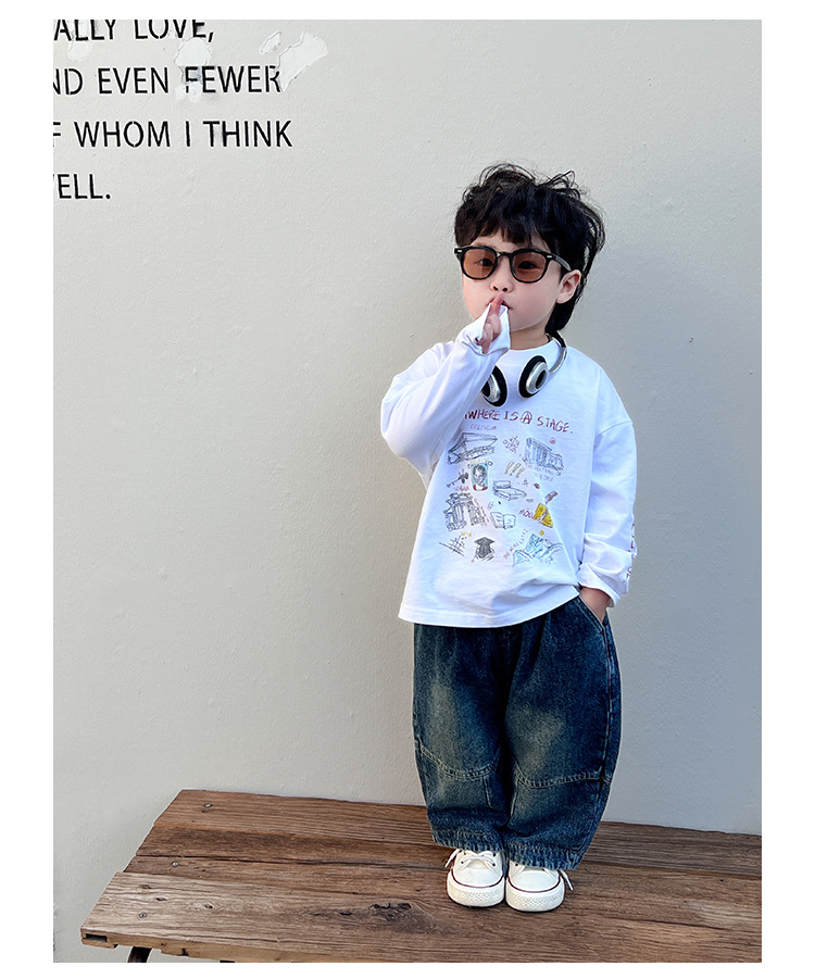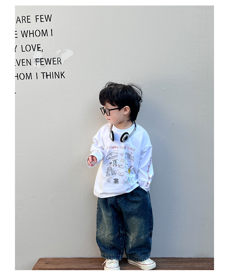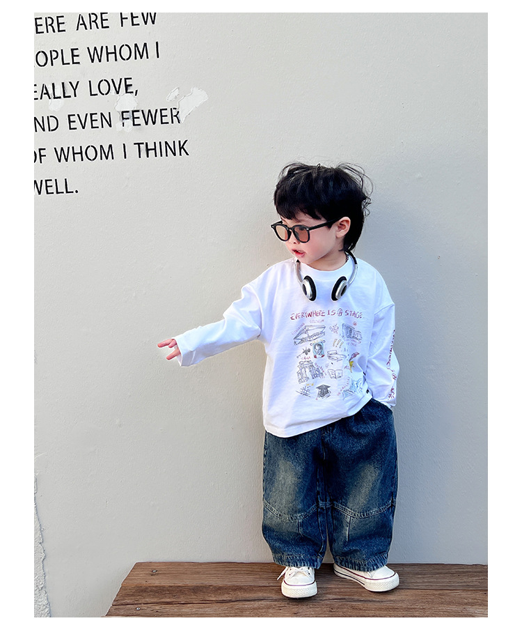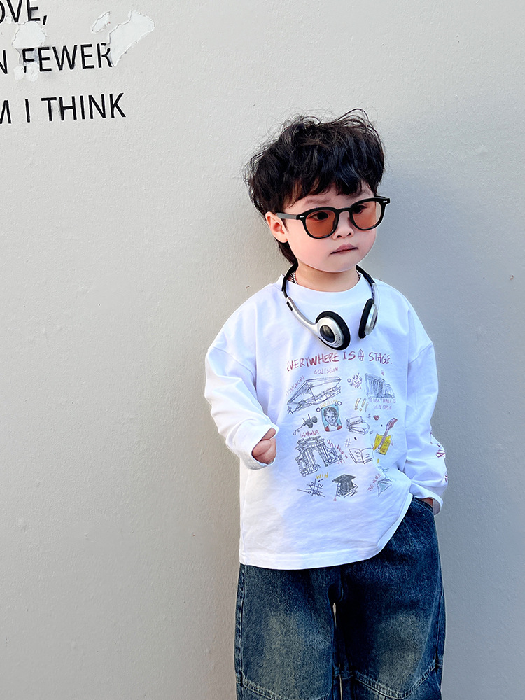 소년 소녀 아기 일러스트 티셔츠 봄과 가을 2025 새로운 서양식 아동베이스 셔츠 한국 스타일 유행 올 매치 유아 티셔츠스토어 가기