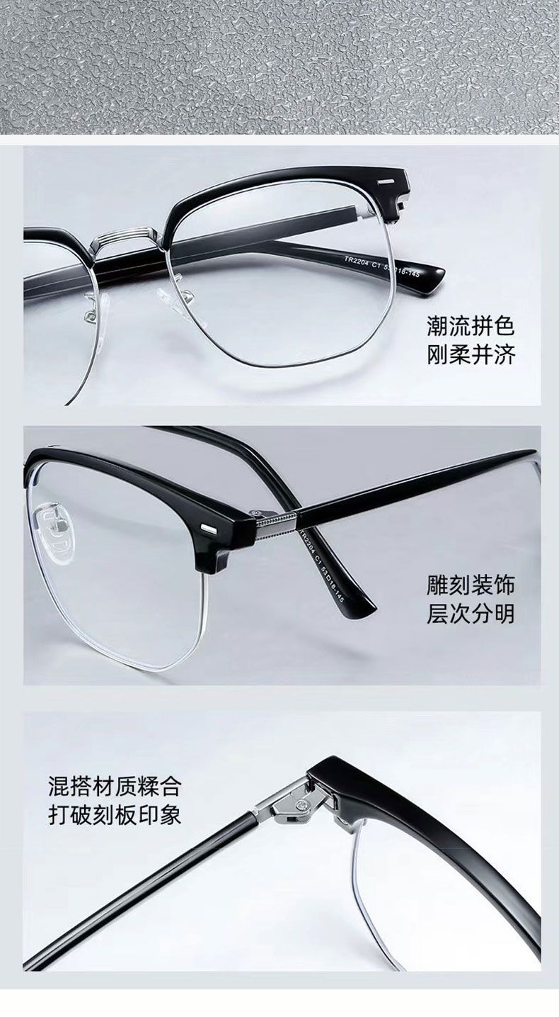 레트로 하프 프레임 안경 여성 블랙 프레임 예술 학생 일반 폴리 테크닉 남성 플랫 안경 안티 블루 라이트 트렌디 아이 보호 안경 프레임