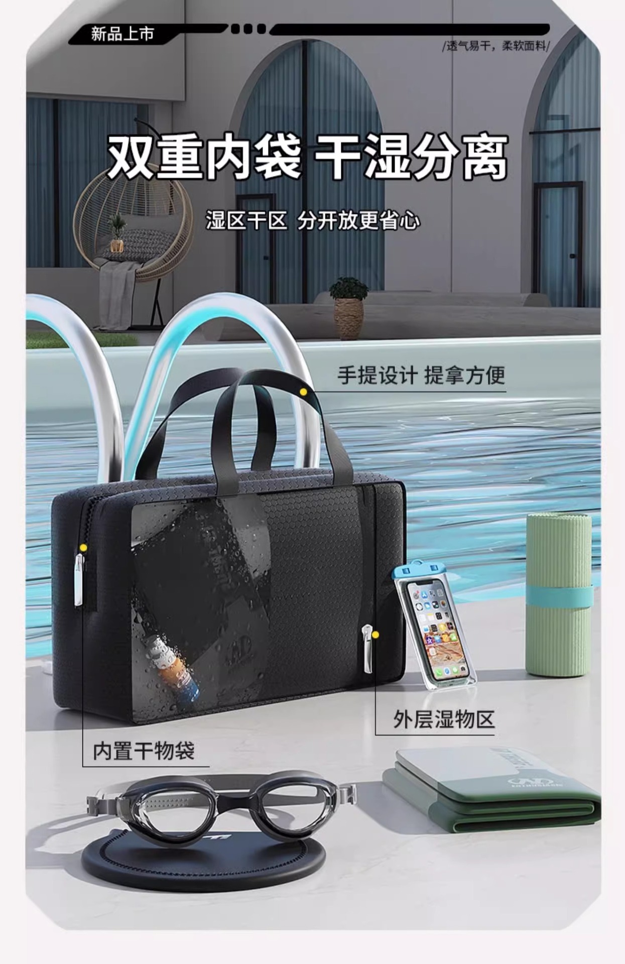 • 프레쉬 베이지 + 수영모 + 수영고글 + 수영가방