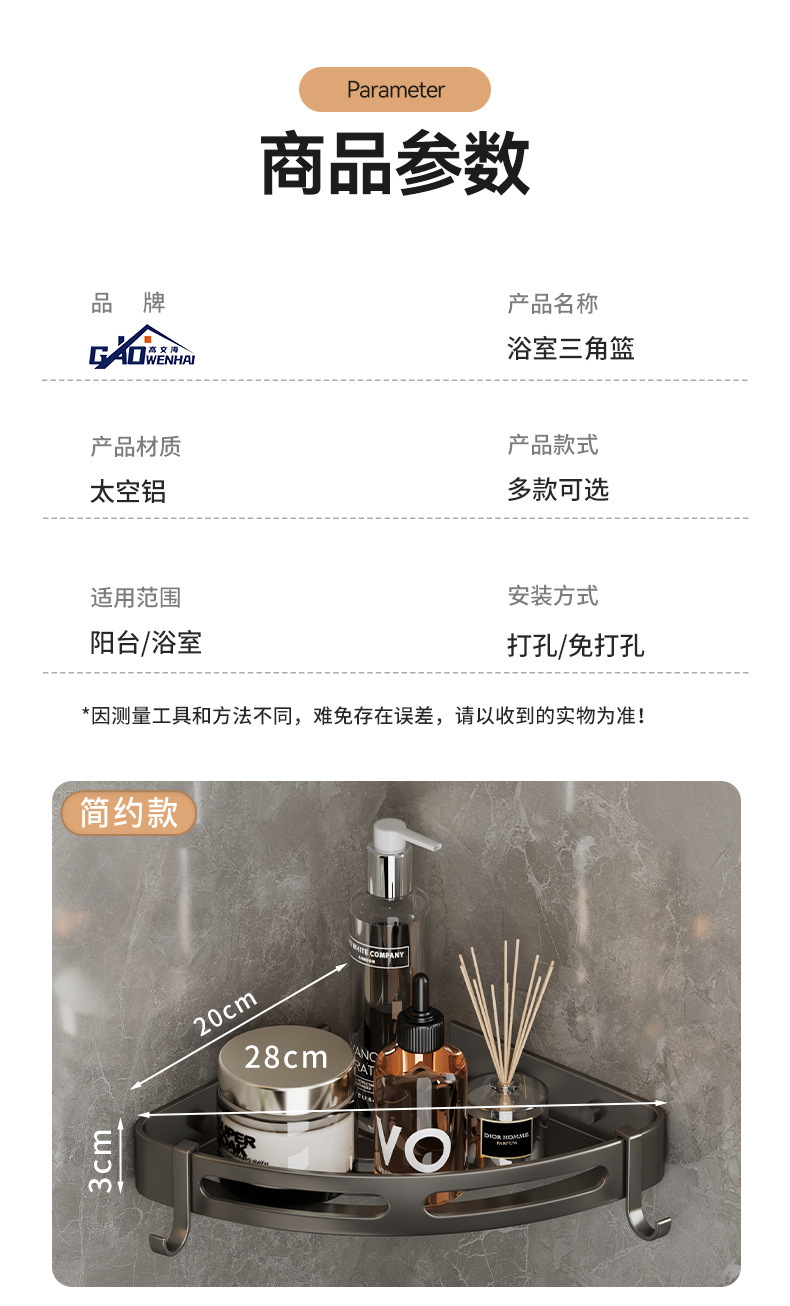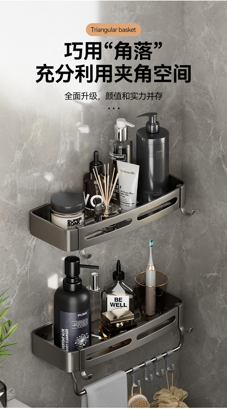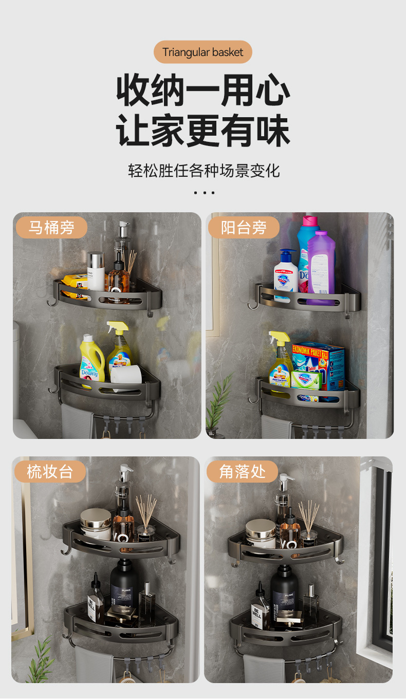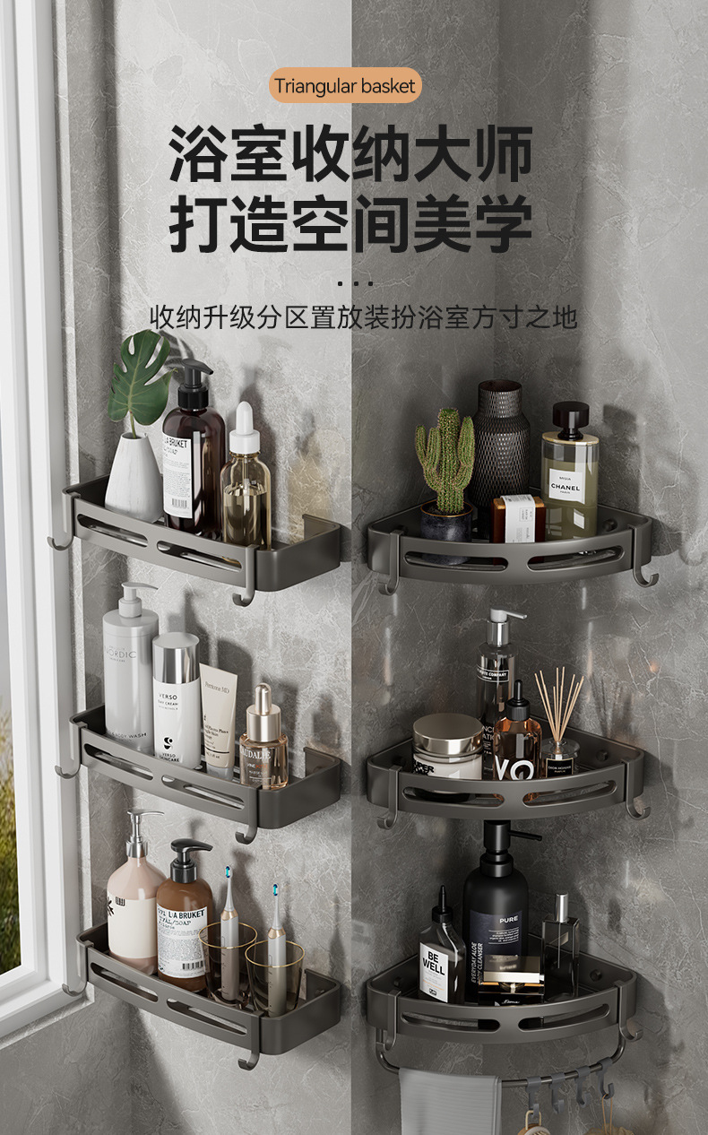 구멍이 없는 욕실 삼각대 욕실 샤워실 벽걸이형 수납선반 화장실 화장실 주방 수납선반스토어 가기