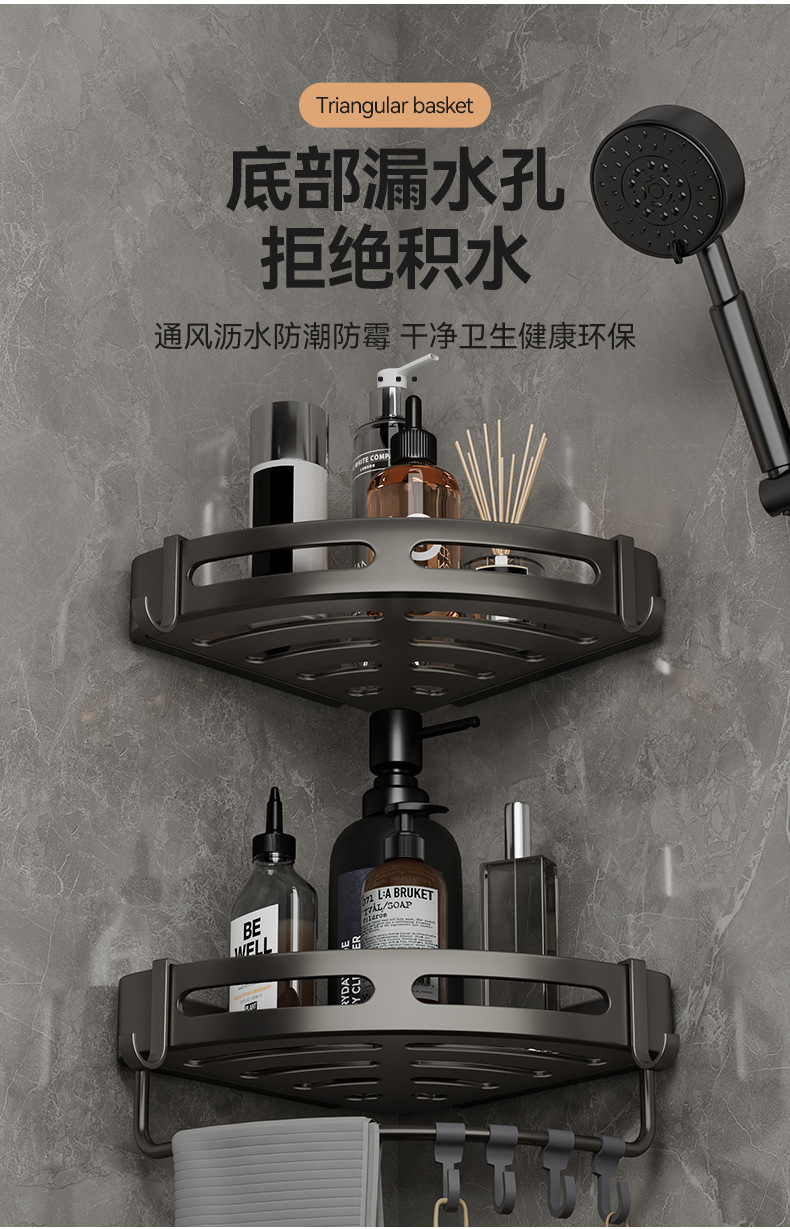 구멍이 없는 욕실 삼각대 욕실 샤워실 벽걸이형 수납선반 화장실 화장실 주방 수납선반