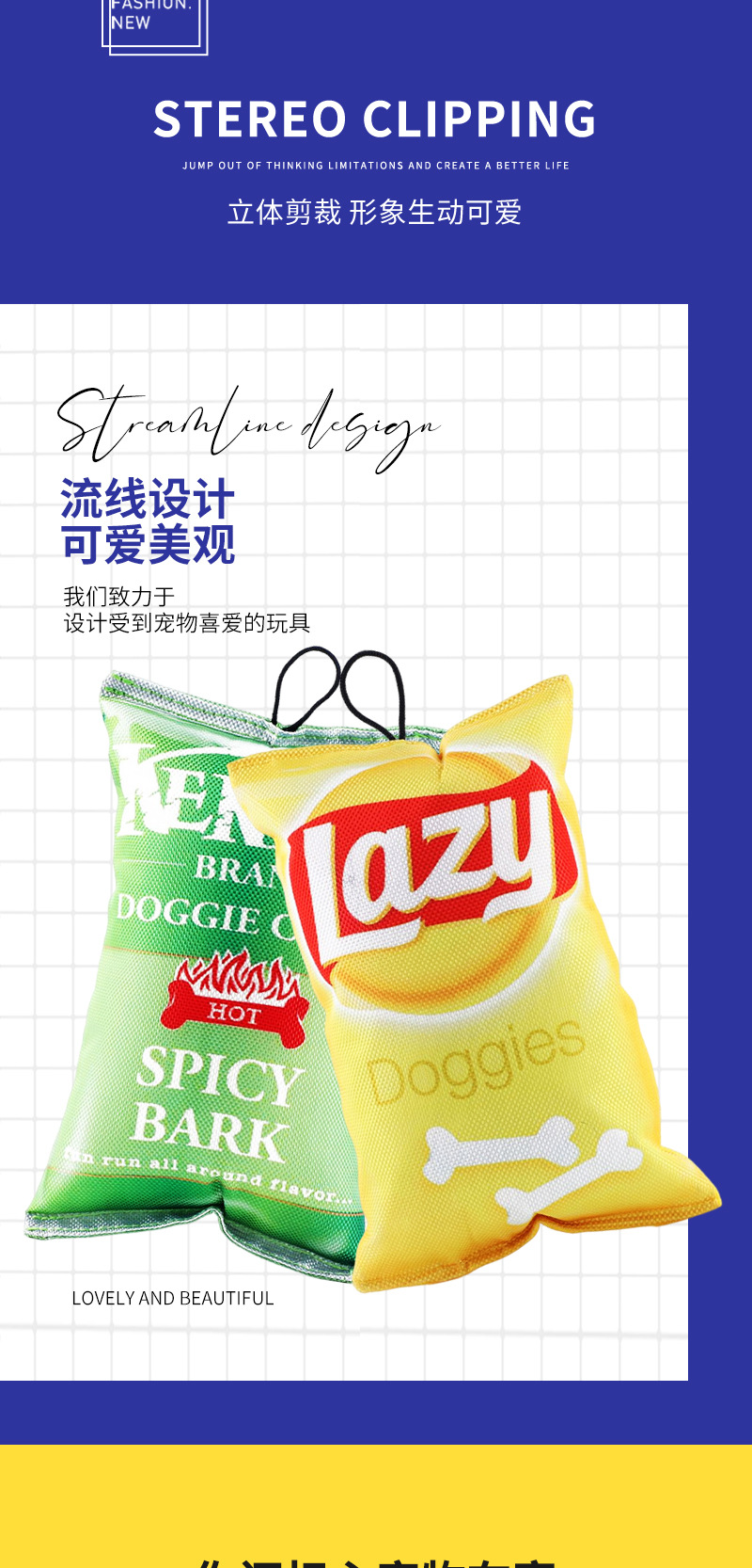 맞춤형 대형 감자 칩 가방, 애완 동물 장난감, 대형 옥스포드 천 시뮬레이션 개 및 고양이 용품, 지루함 해소, 치아 연삭 및 물림 방지스토어 가기