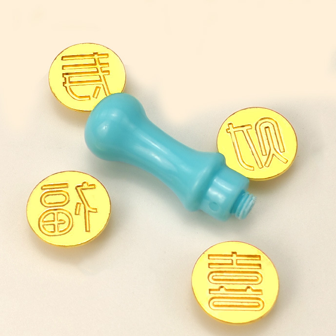 • 금속 행운, 부, 장수 및 행복 씰 헤드 + 청록색 손잡이