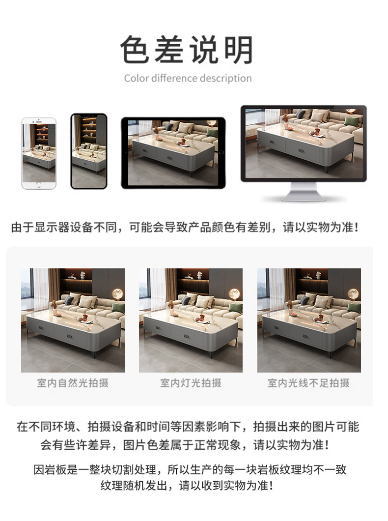 A8L 록 플레이트 커피 테이블 거실 홈 2024 새로운 스타일 빛 럭셔리 테이블 센스 작은 아파트 바닥-서 커피 테이블 TV 캐비닛