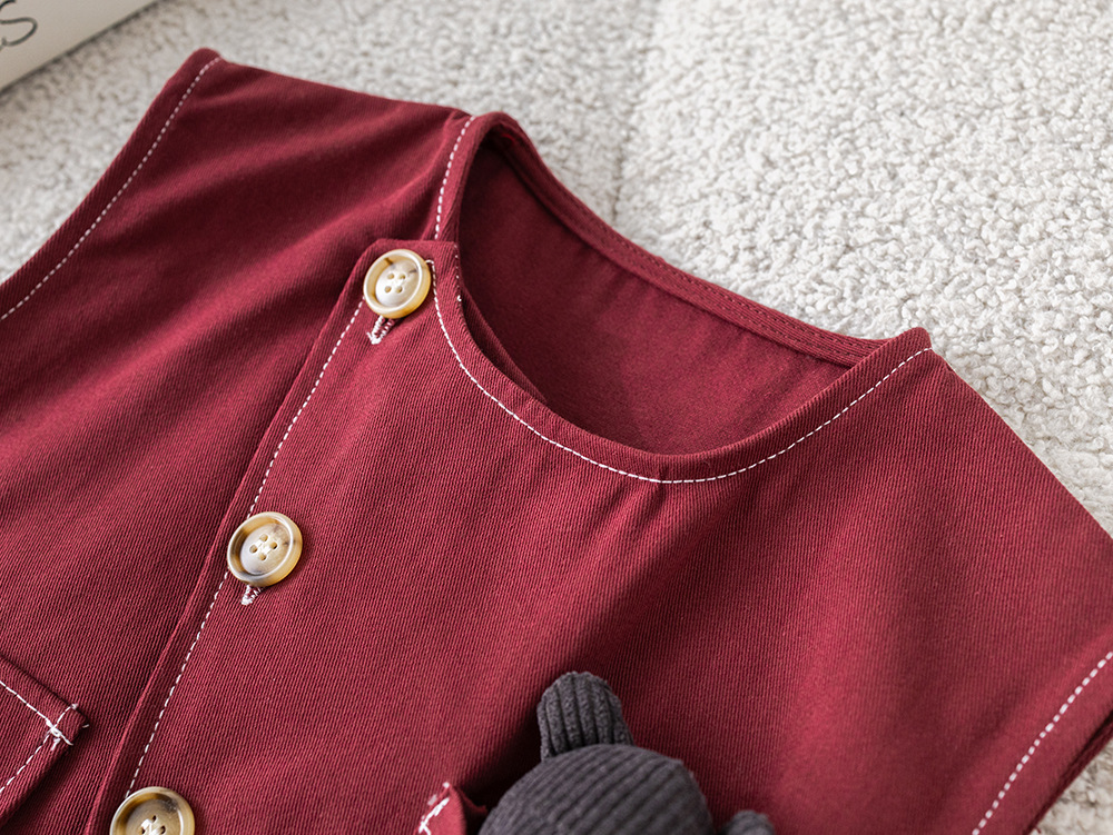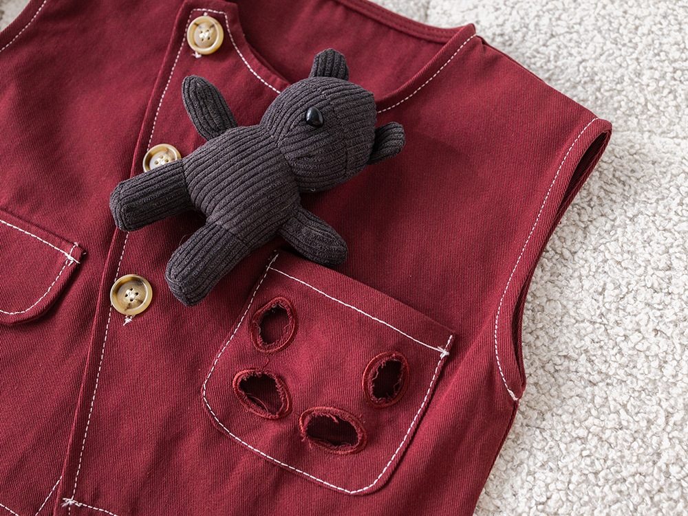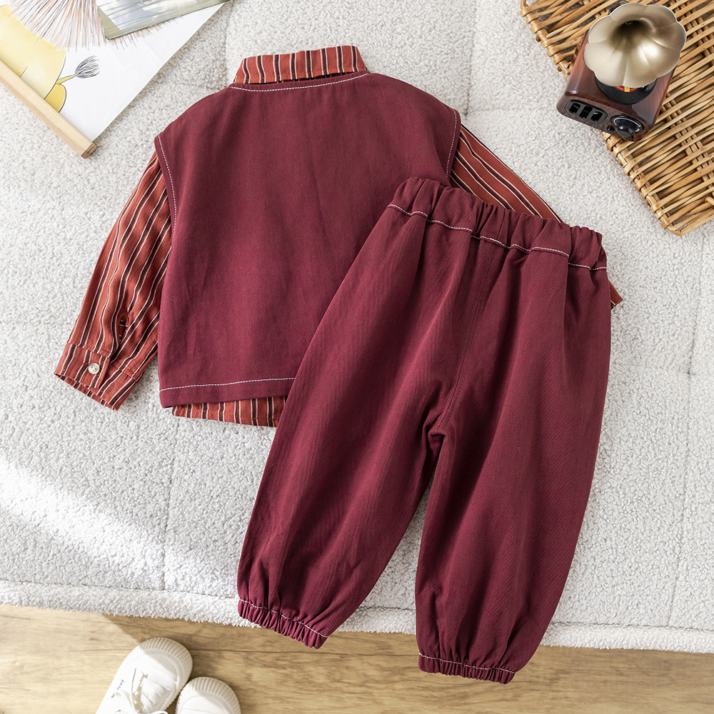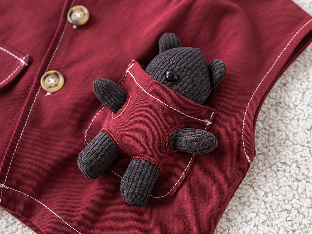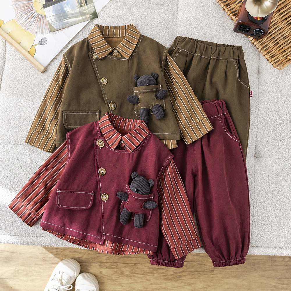 소년 캐주얼 셔츠 조끼 세트 한국 만화 곰 신사 공연 의류 2025 봄 새로운 긴 소매