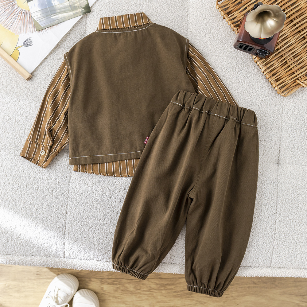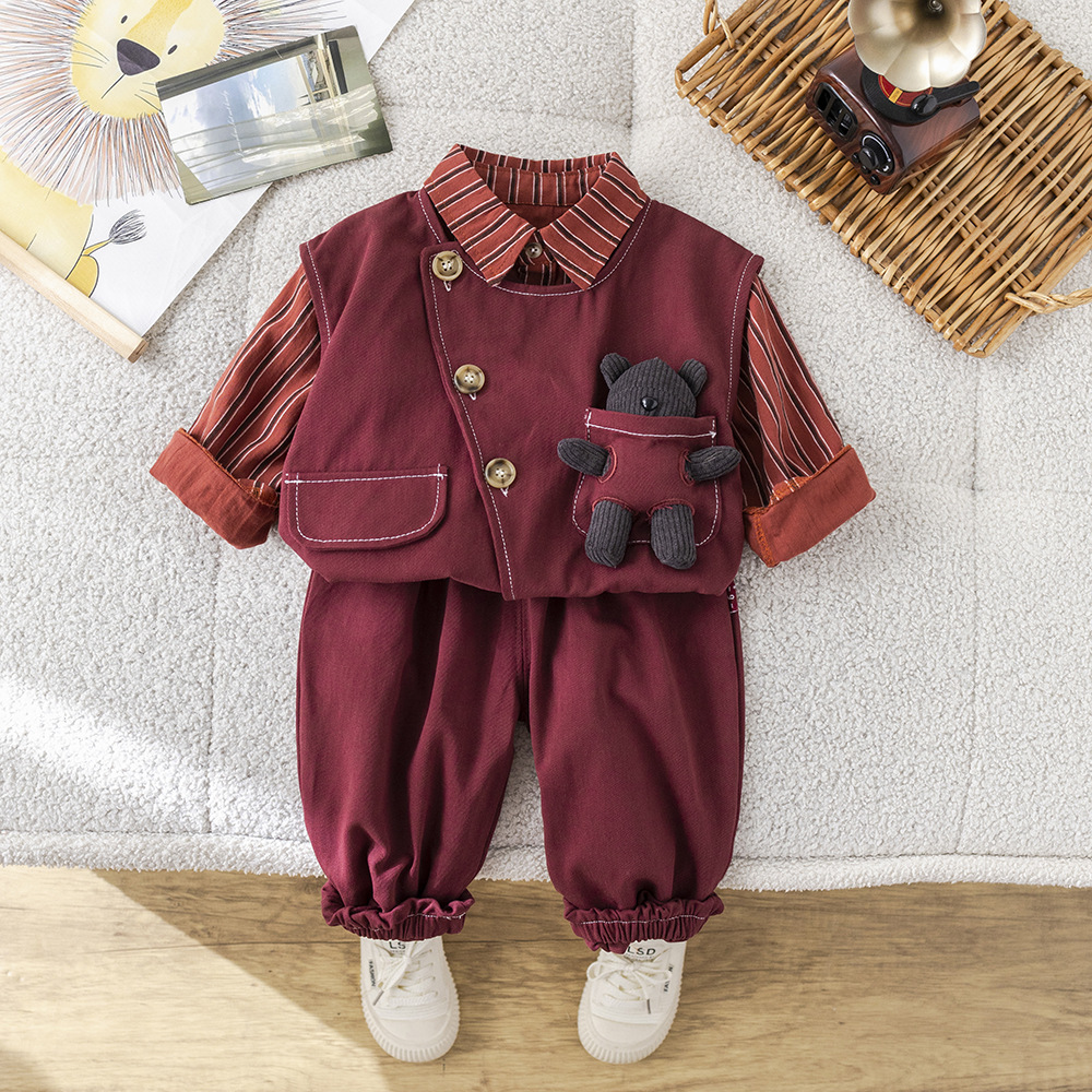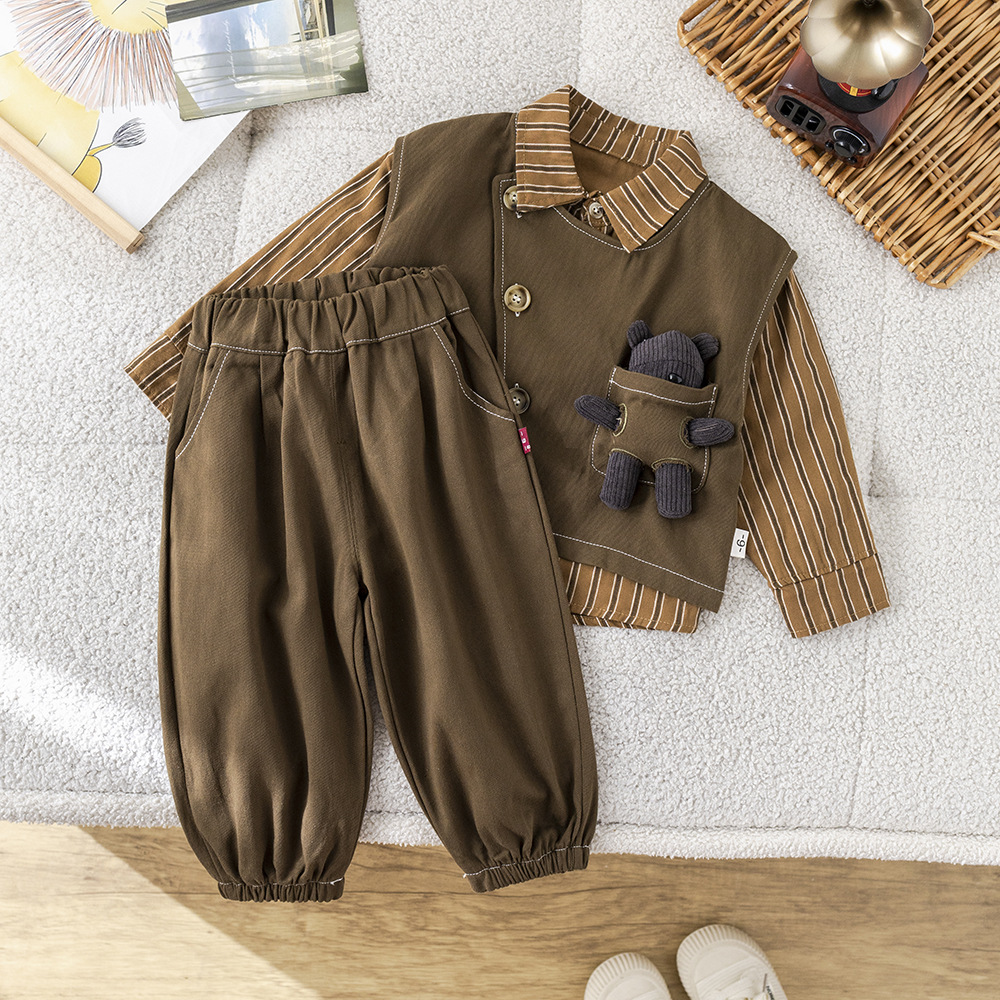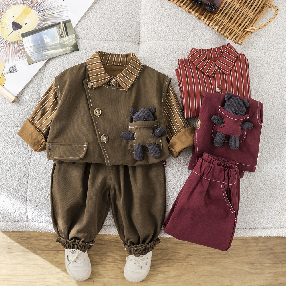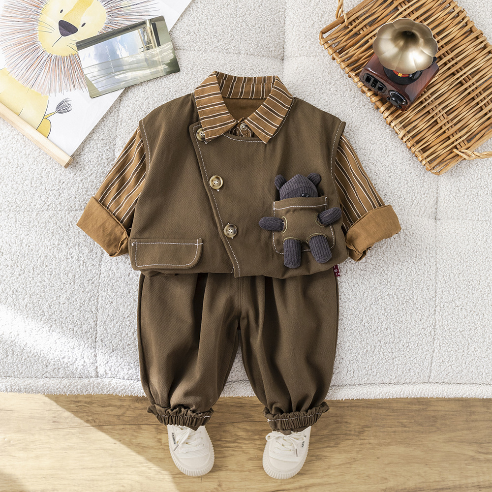 소년 캐주얼 셔츠 조끼 세트 한국 만화 곰 신사 공연 의류 2025 봄 새로운 긴 소매스토어 가기