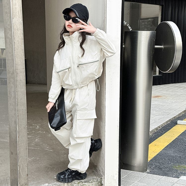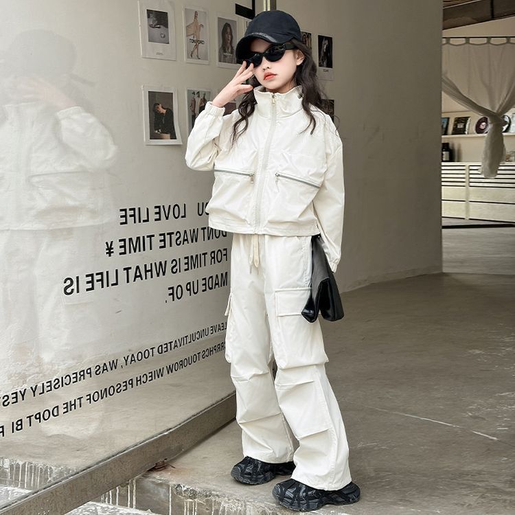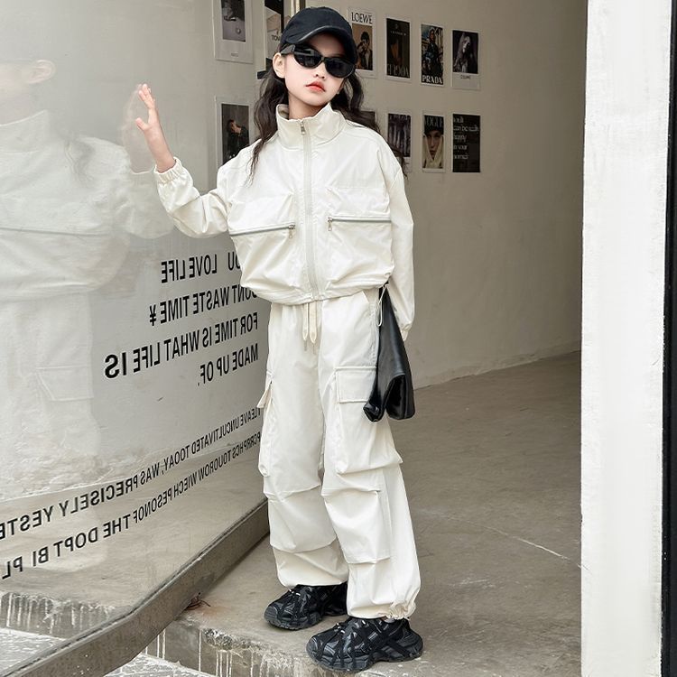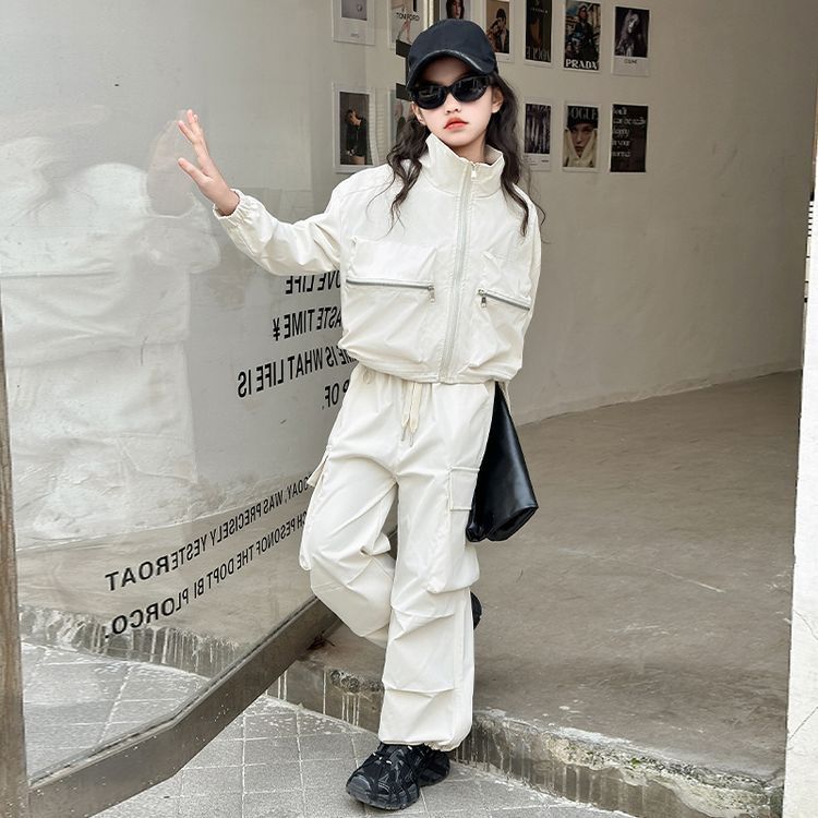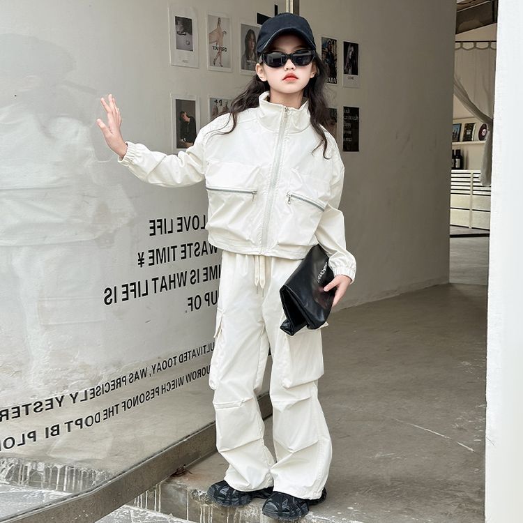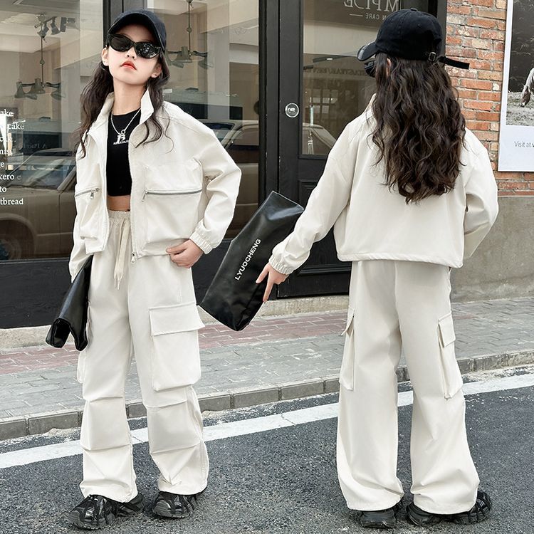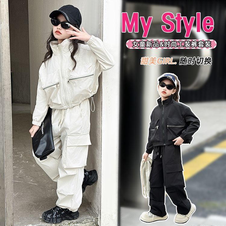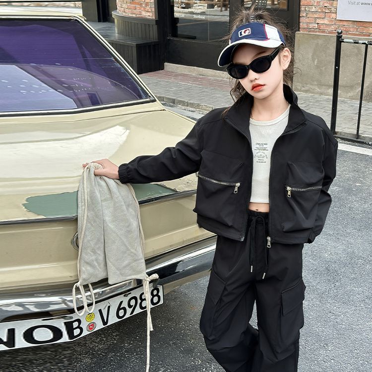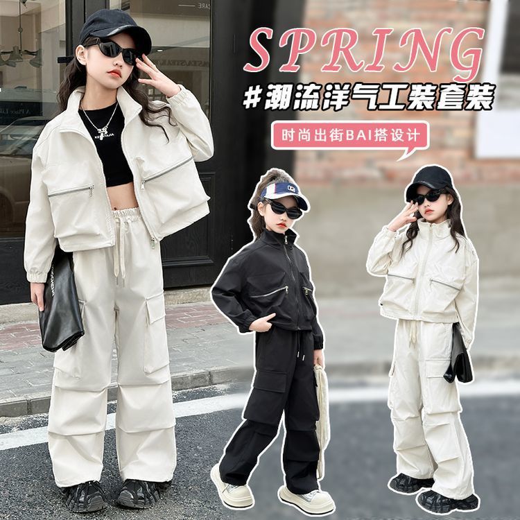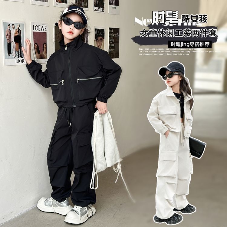 블랙 루즈 후드 스웨트 걸스 세트 2025 새로운 와이드 레그 팬츠 2 피스 스포츠 긴 바지