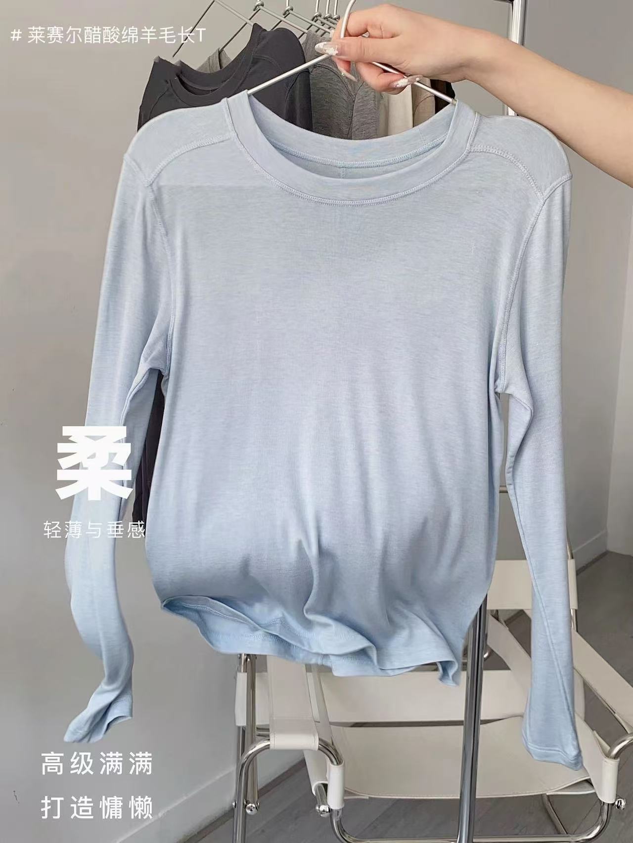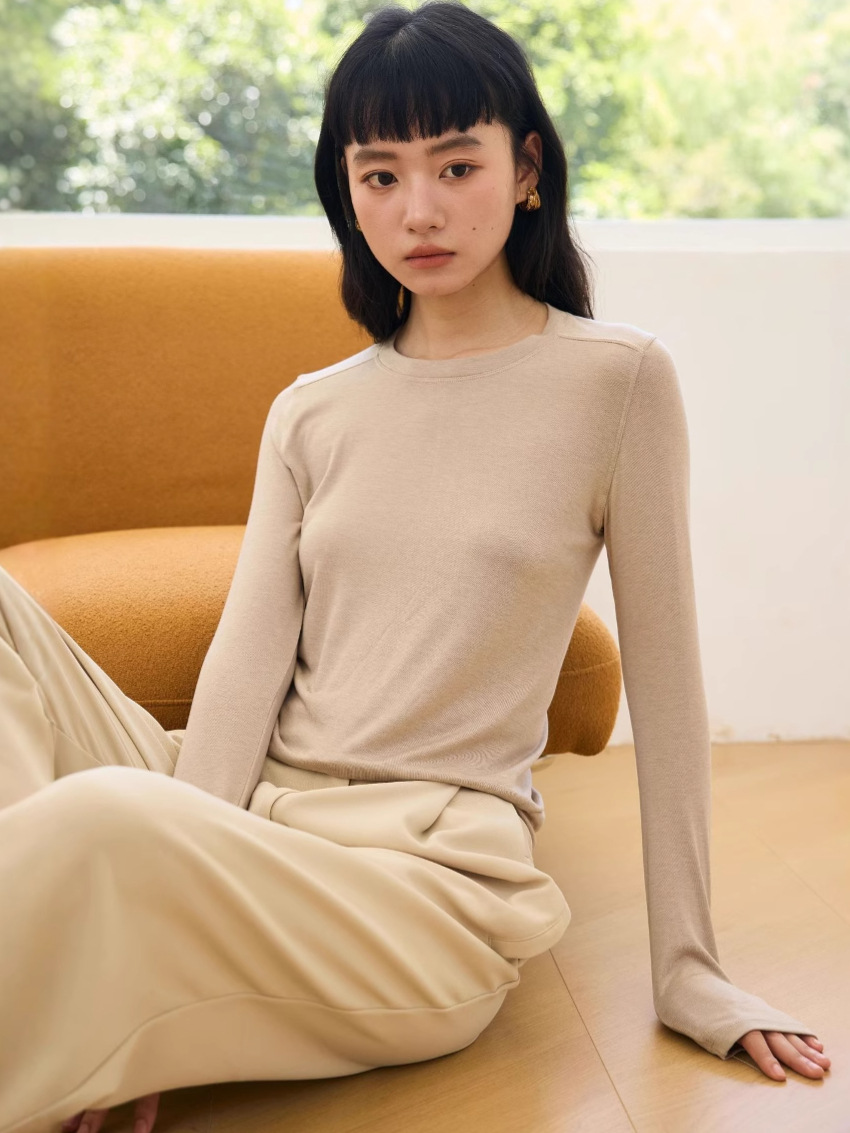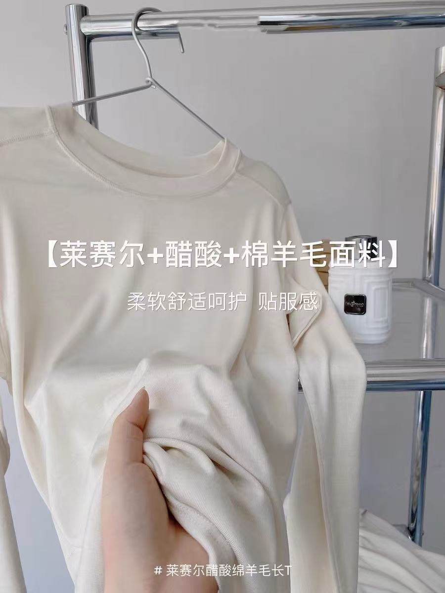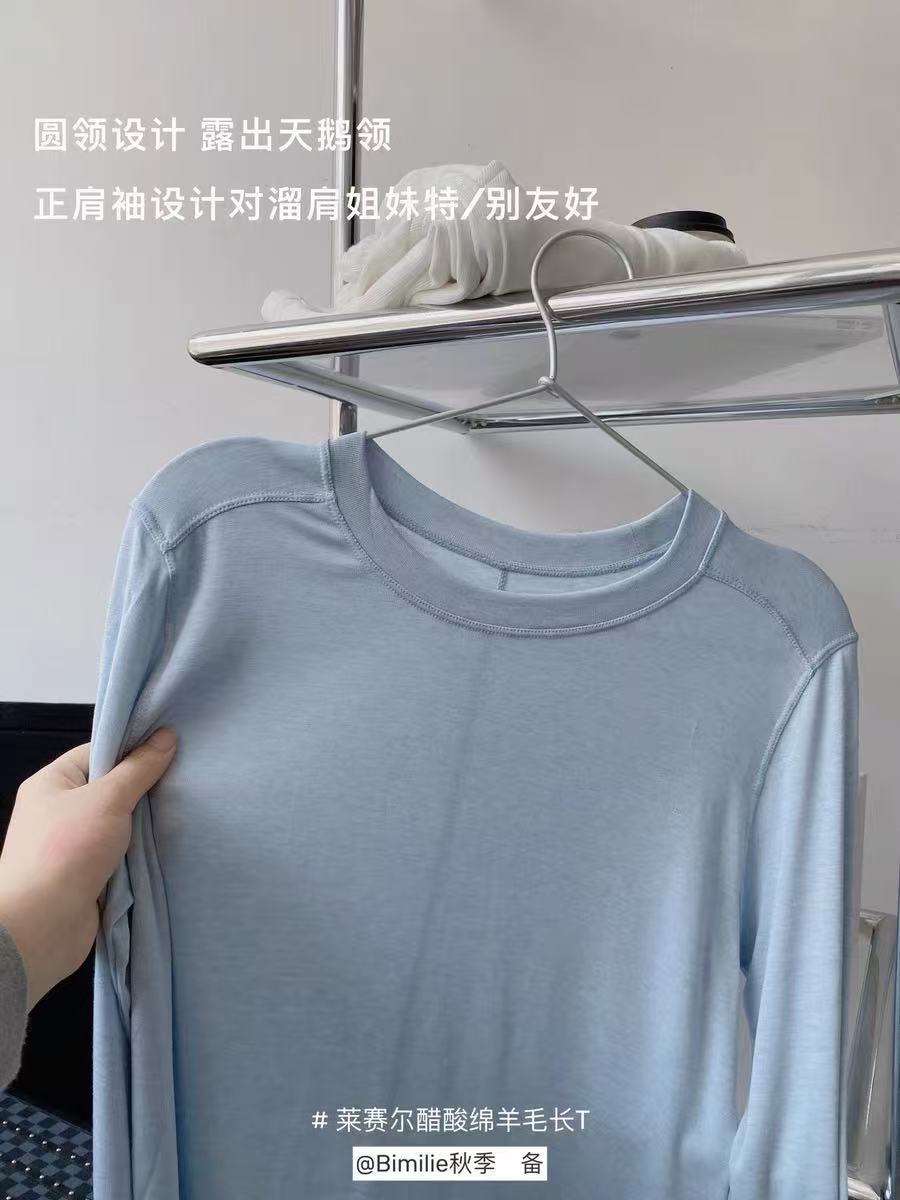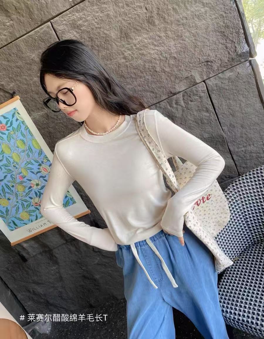 봄과 여름 2025 양모 Lyocell 아세트산베이스 셔츠 크루 넥 스웨터 솔리드 컬러 슬림 긴 소매 탑 9936스토어 가기