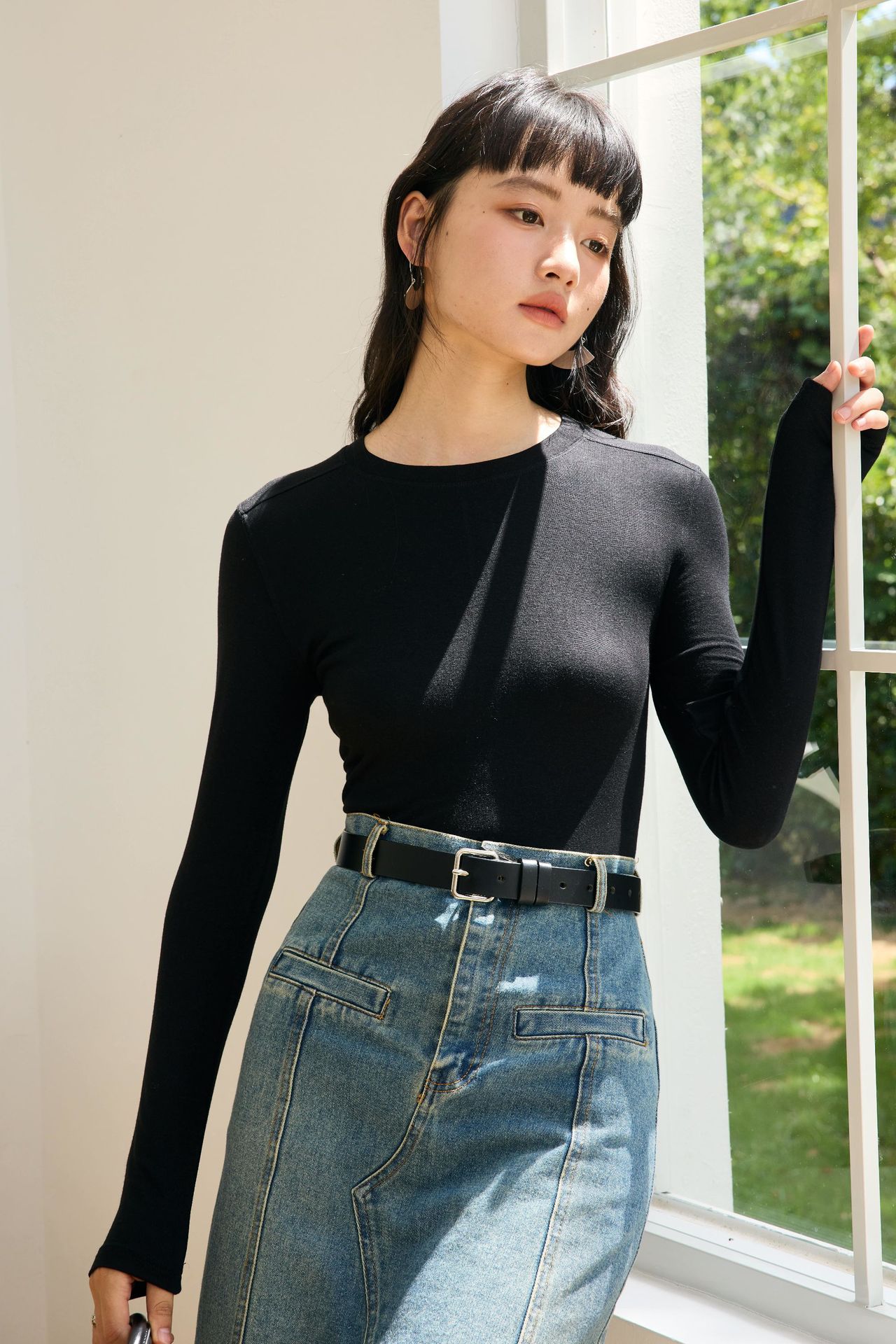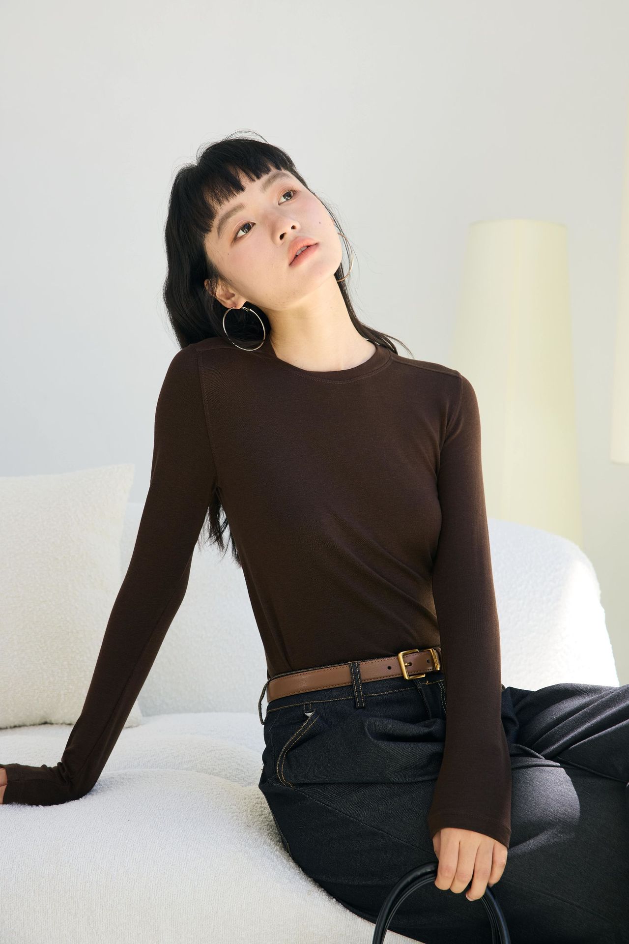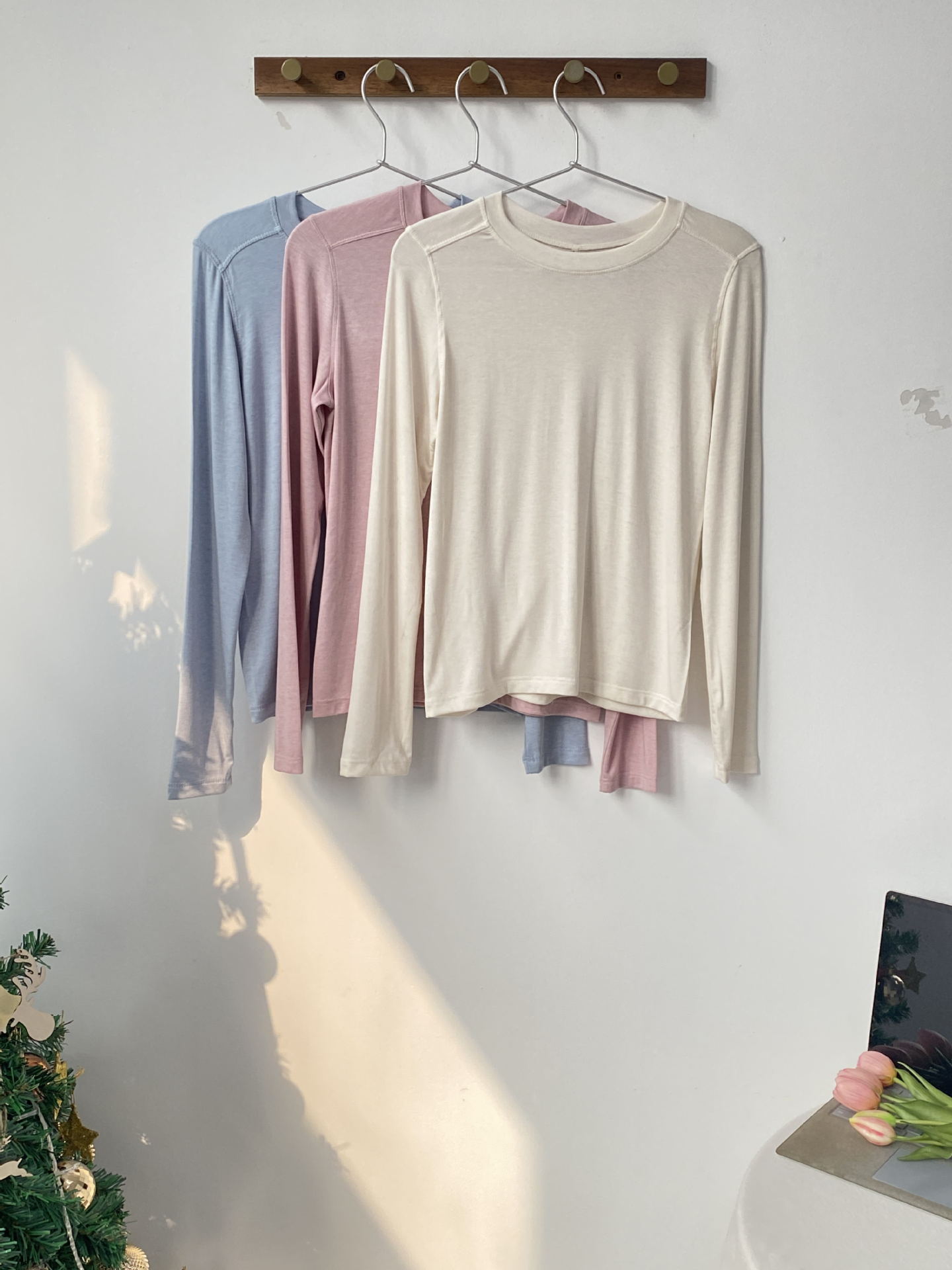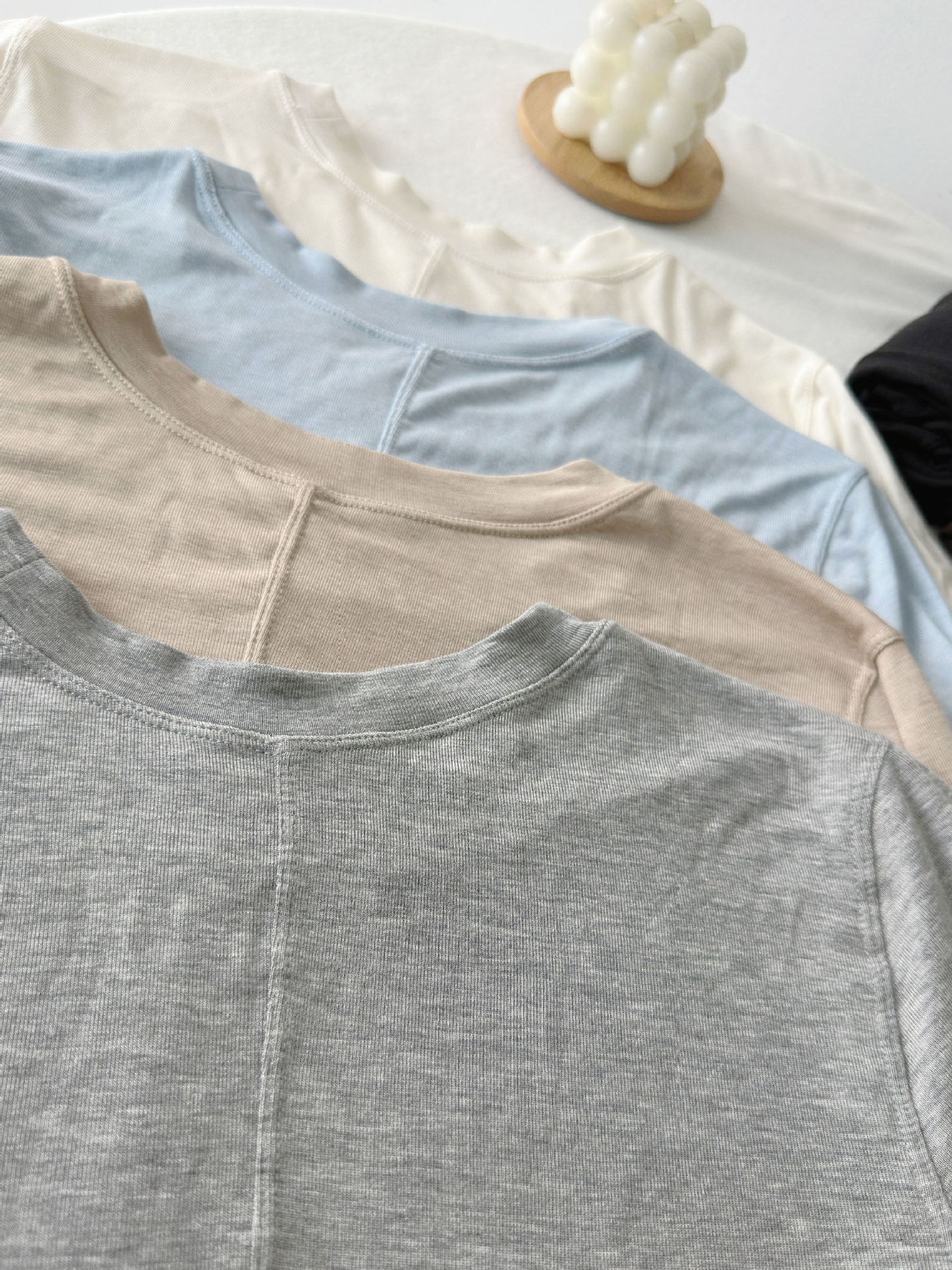 봄과 여름 2025 양모 Lyocell 아세트산베이스 셔츠 크루 넥 스웨터 솔리드 컬러 슬림 긴 소매 탑 9936스토어 가기