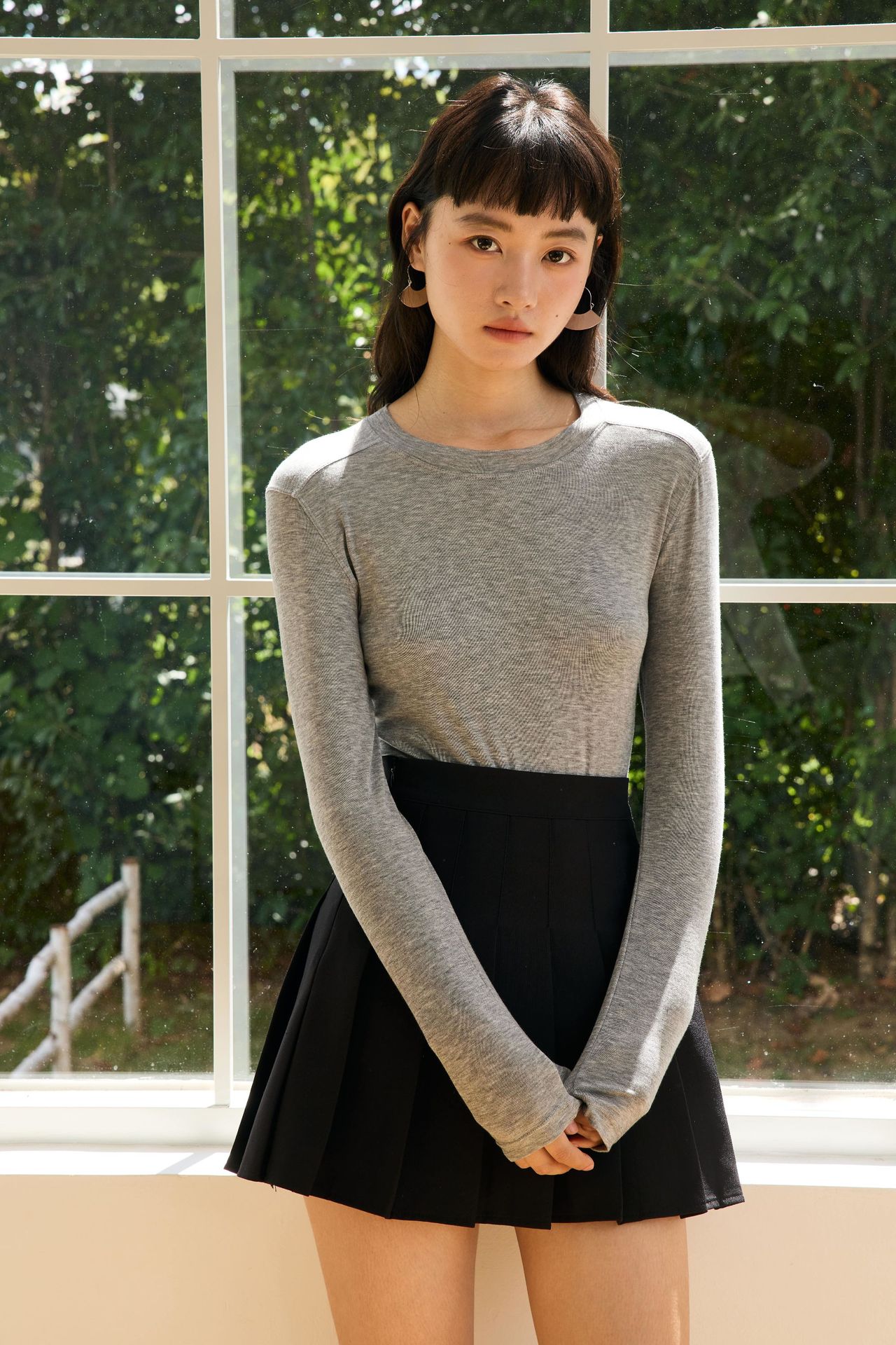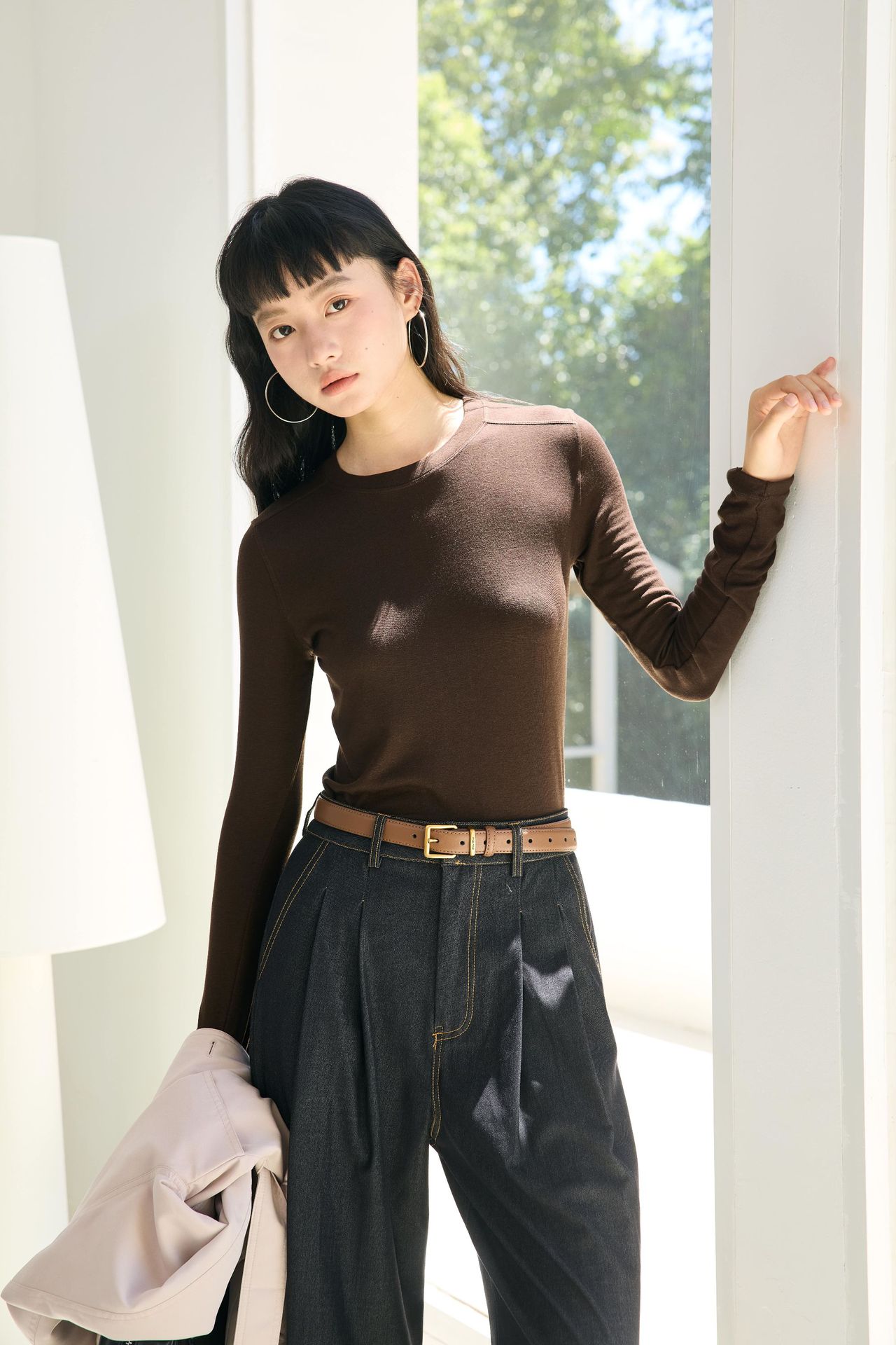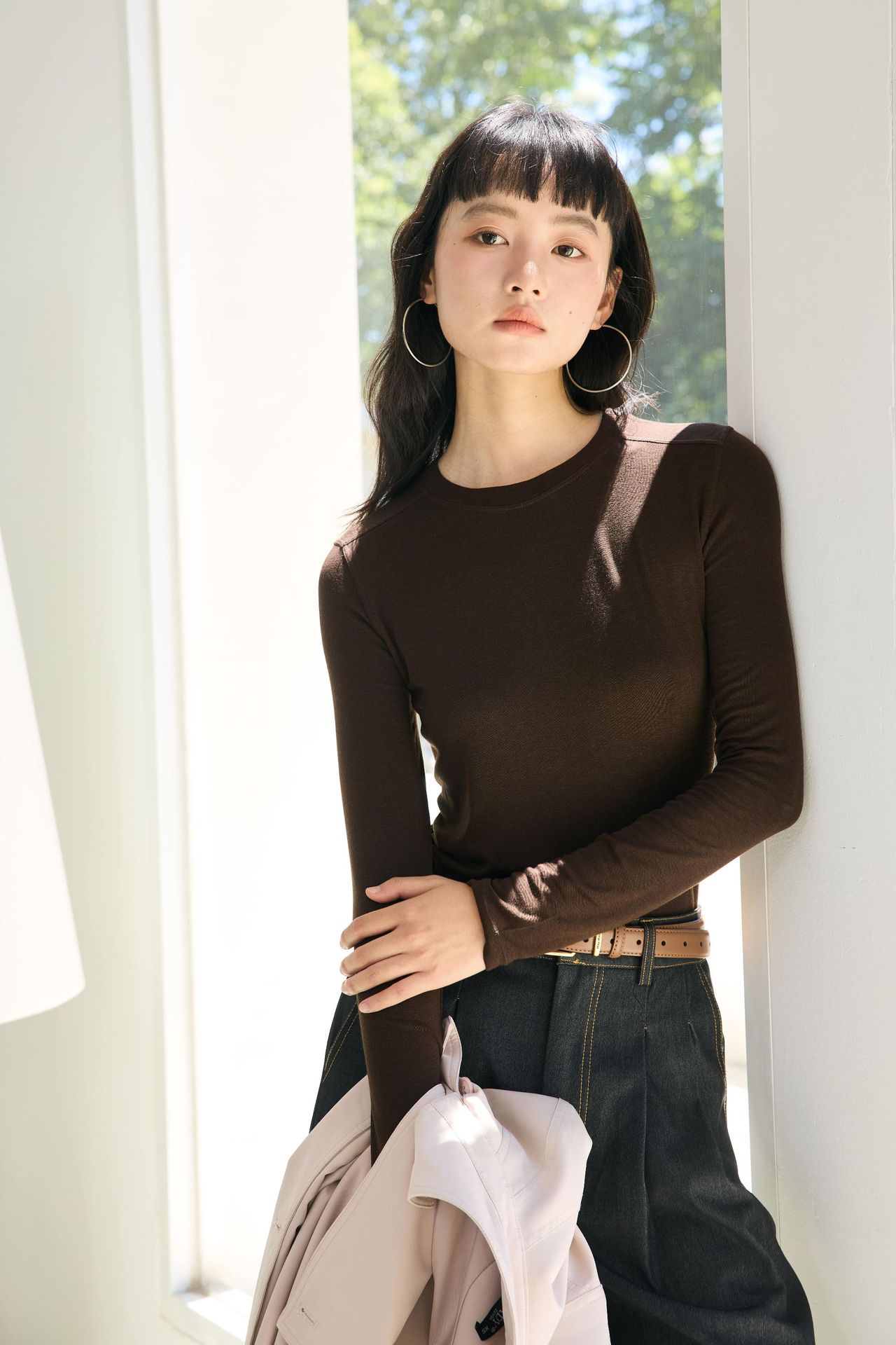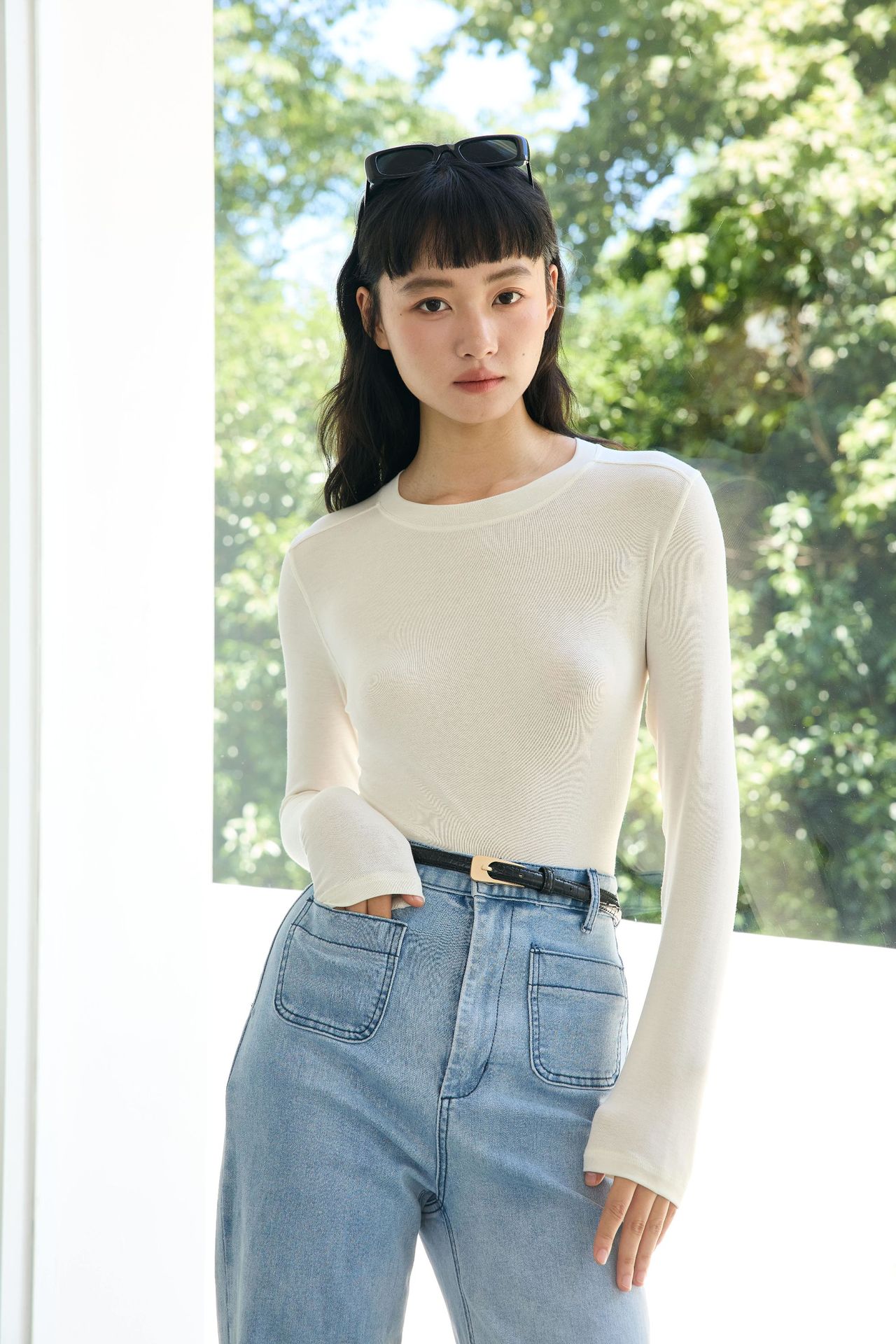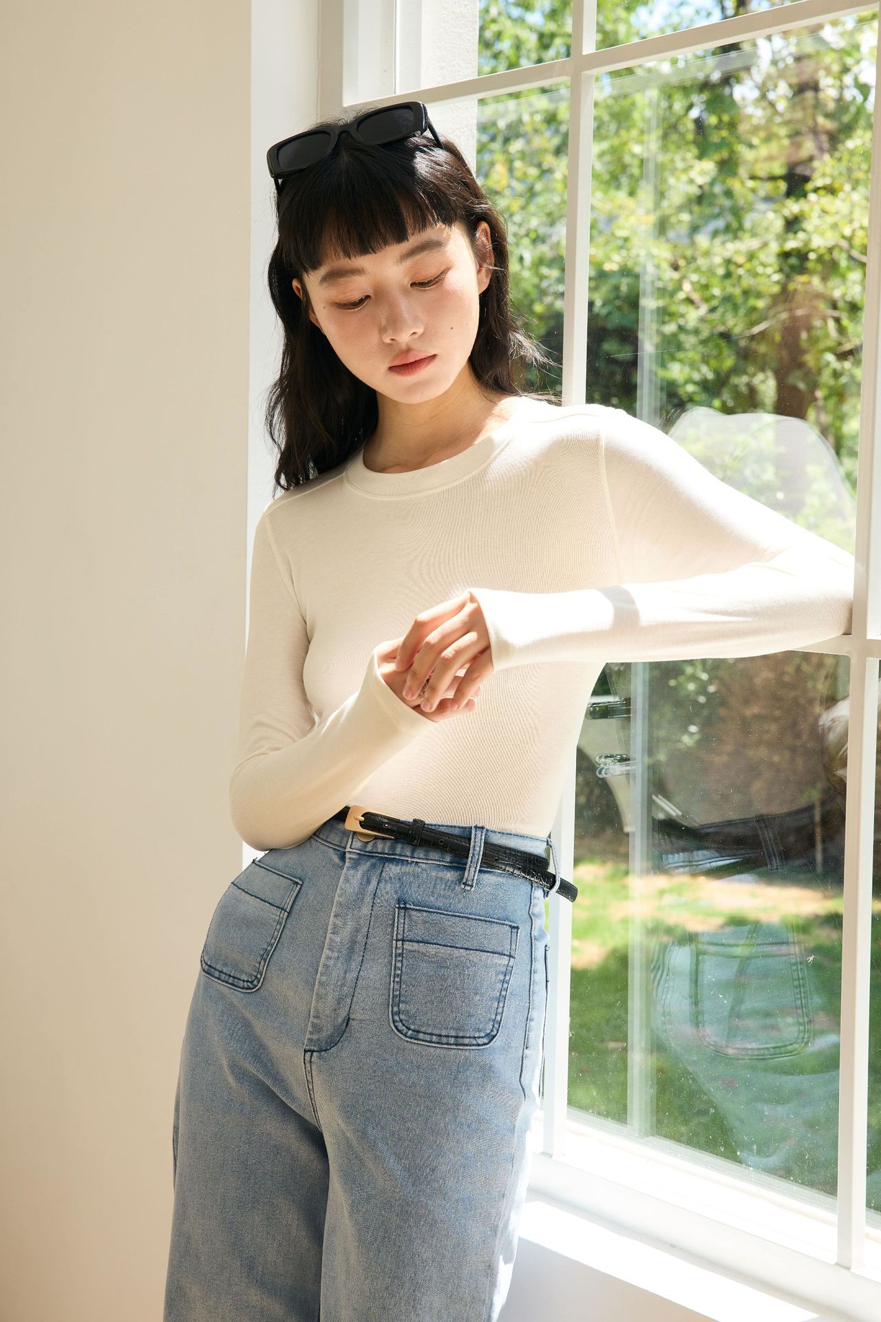 봄과 여름 2025 양모 Lyocell 아세트산베이스 셔츠 크루 넥 스웨터 솔리드 컬러 슬림 긴 소매 탑 9936스토어 가기