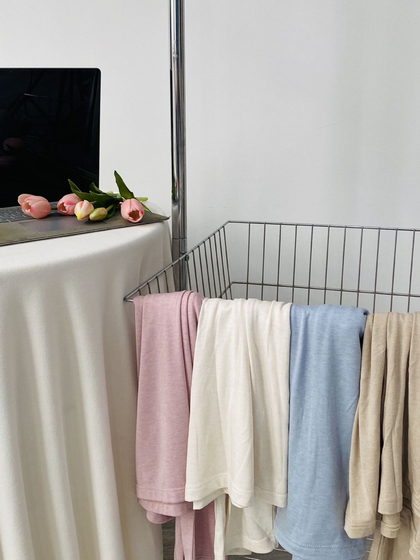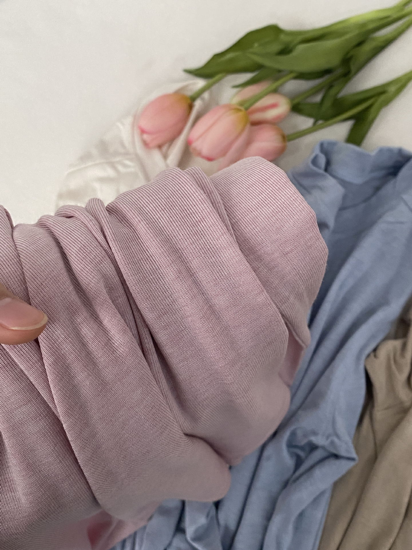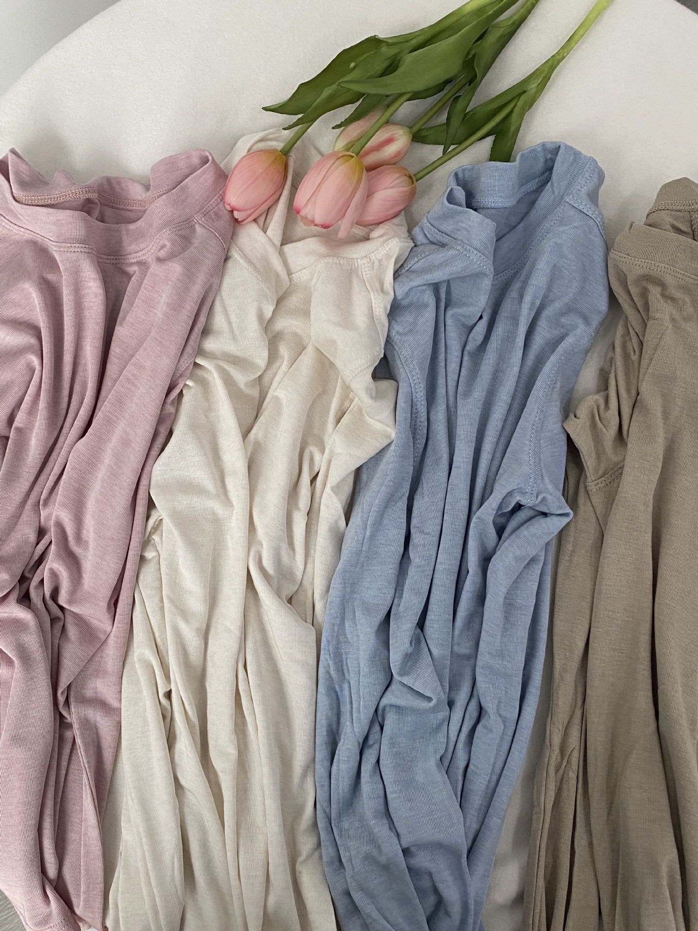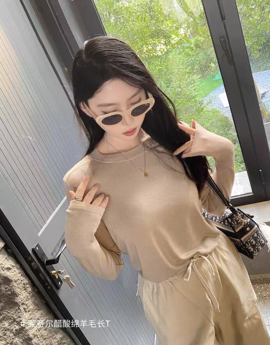 봄과 여름 2025 양모 Lyocell 아세트산베이스 셔츠 크루 넥 스웨터 솔리드 컬러 슬림 긴 소매 탑 9936