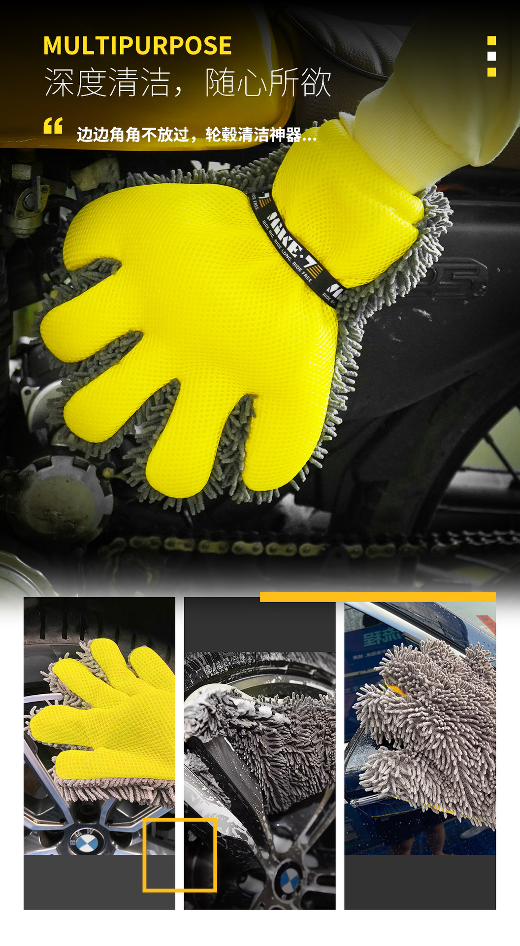 Xiaozhong 다섯 손가락 세차 장갑 부동액 자동차 페인트 청소 플러시 메쉬 양면 오토바이 걸레스토어 가기
