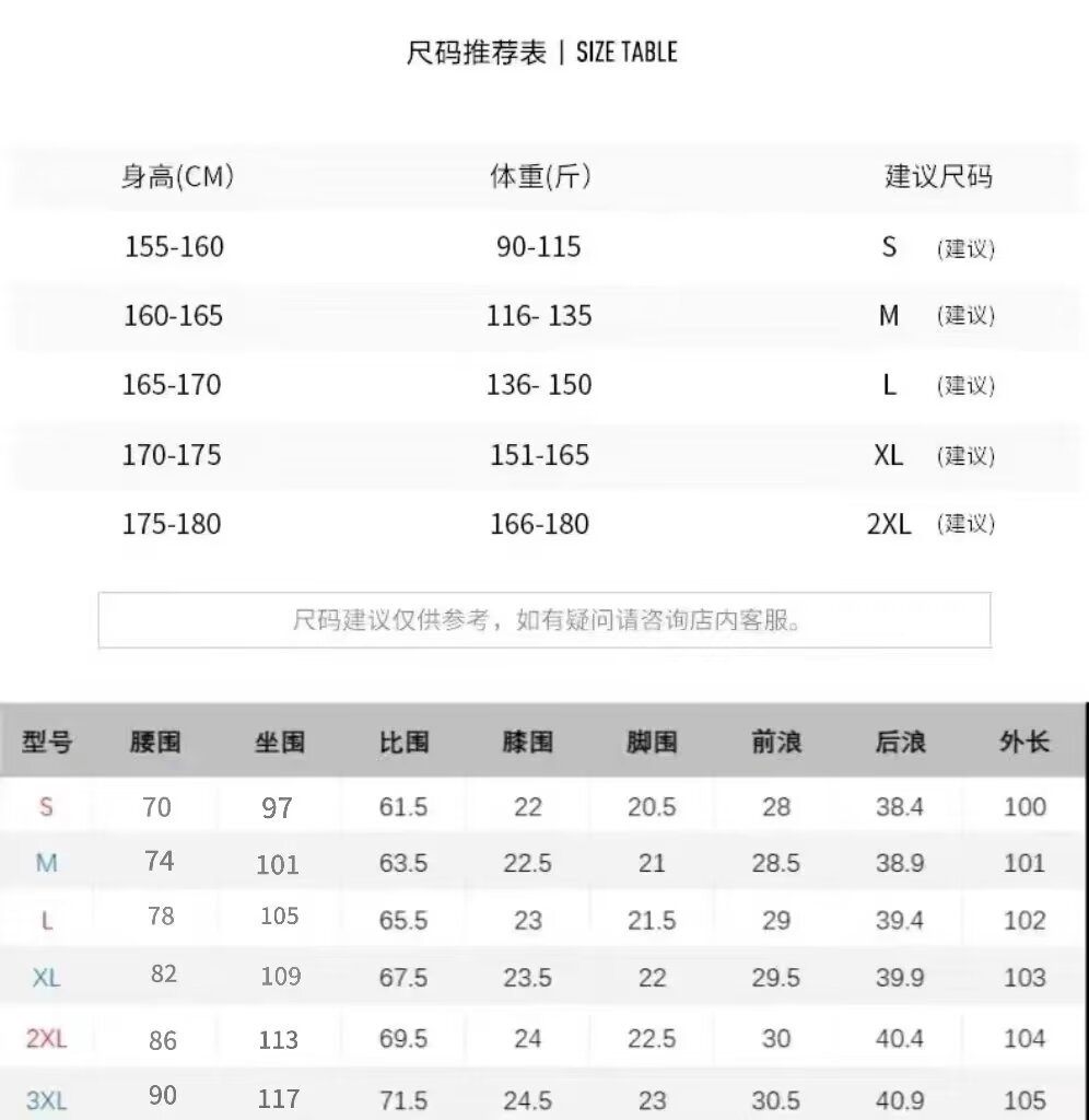 注意:1.测量单位/CM,模特效果仅供参考,手工量可能会造成1-3CM的误差,不影响穿着效果,请知悉。2.因为显示差异及拍摄光线等原因,图片和实物可能存在色差,具体以收到实物为准。