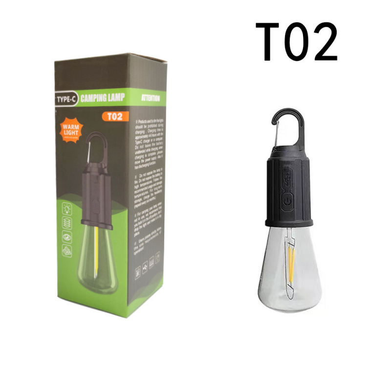 야외 텅스텐 캠핑 램프 타입-C 충전식 후크 포함 캠프용 따뜻한 빛 텐트 램프 전구 걸이형 램프 태양광