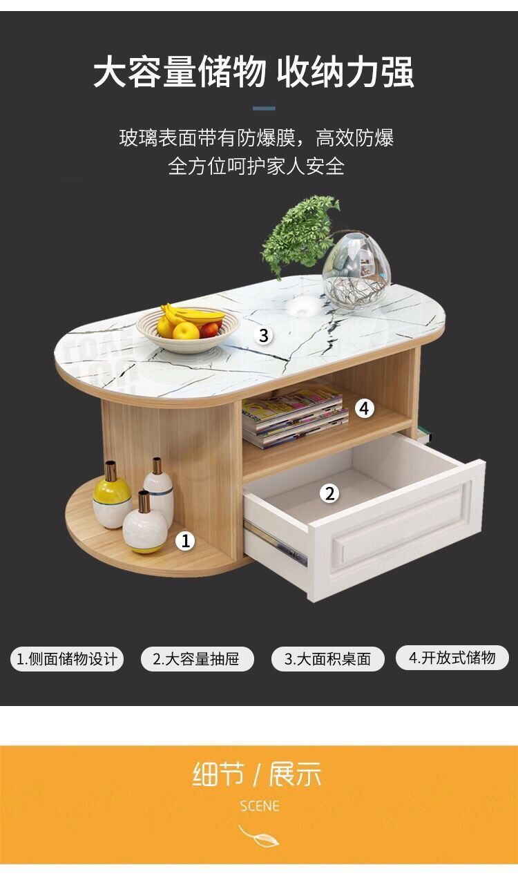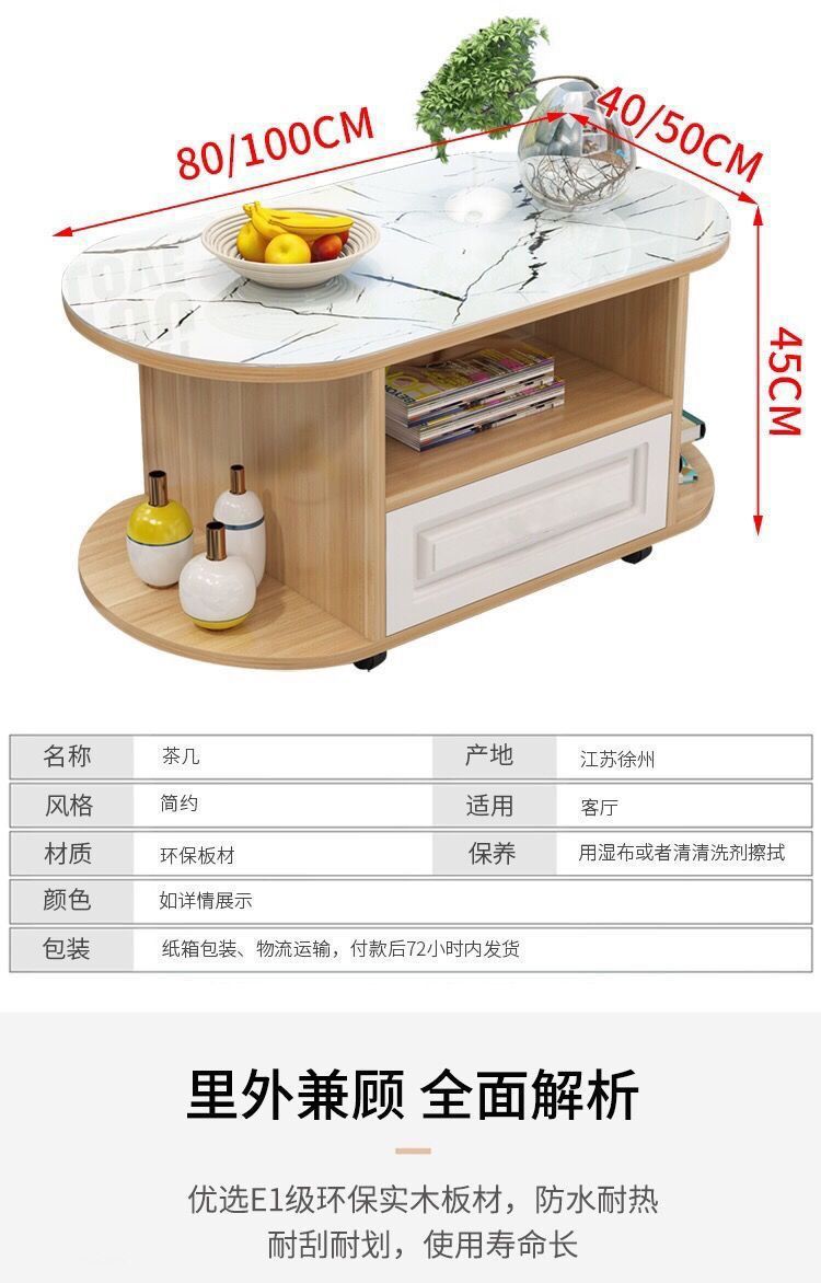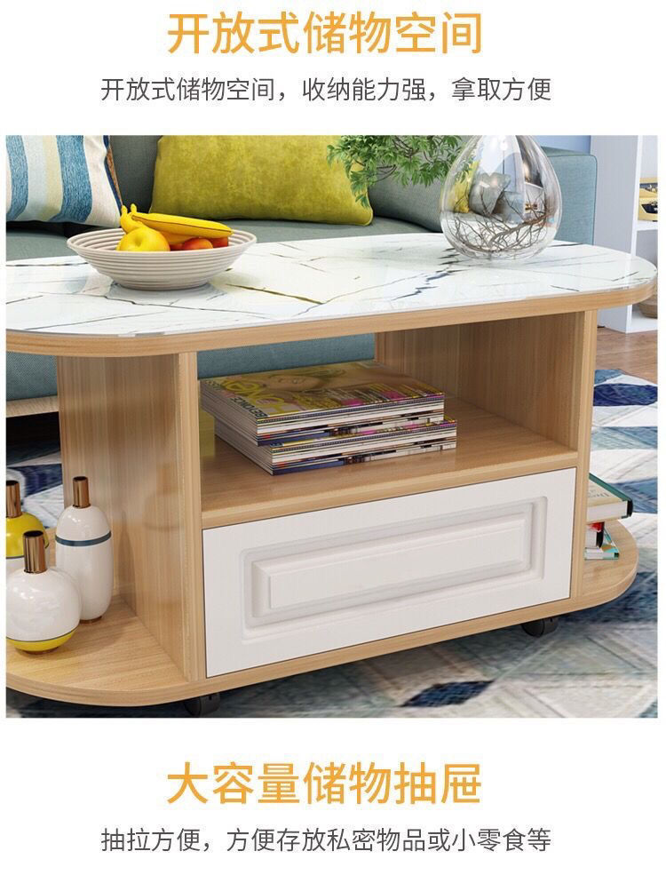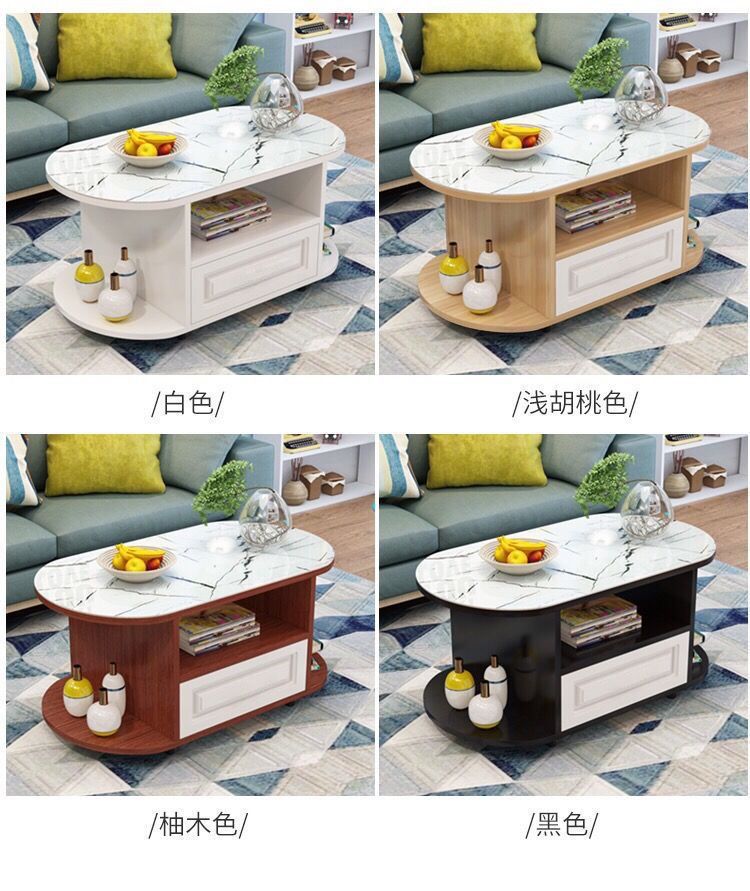 커피 테이블 작은 아파트 현대 간단한 이동식 타원형 유리 커피 테이블 롤러 경제적 인 다기능 차 테이블스토어 가기