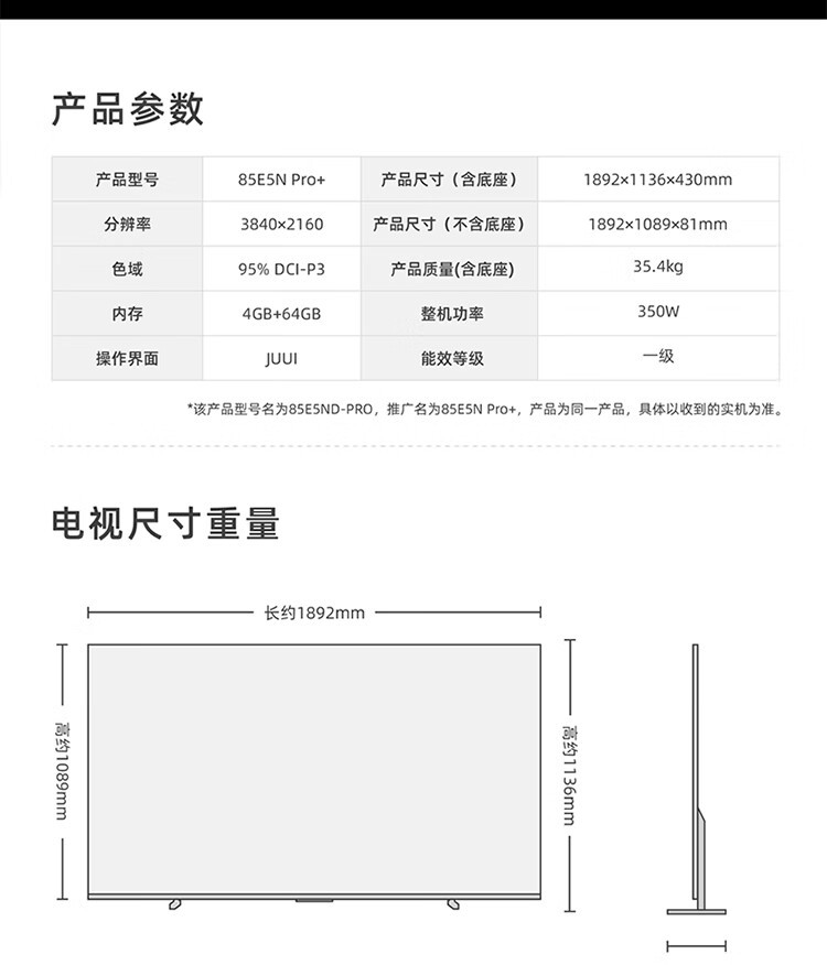 바다. 편지 85E5ND-PRO 85 인치 미니 LED LCD TV 85E5N 프로