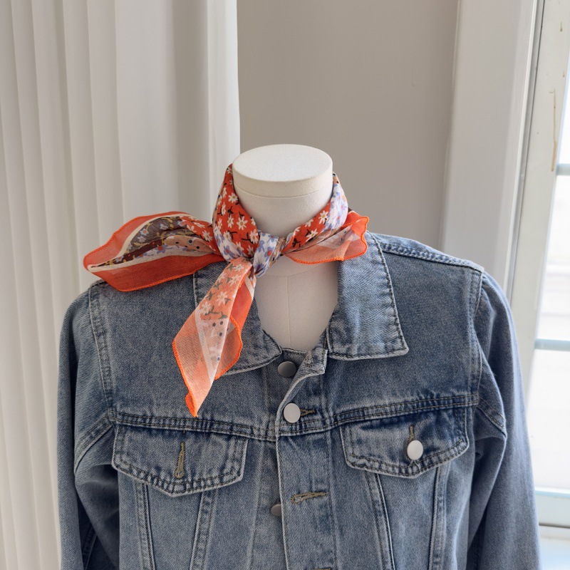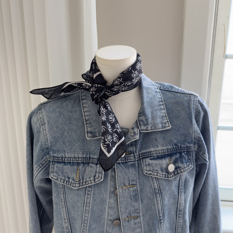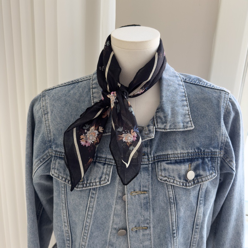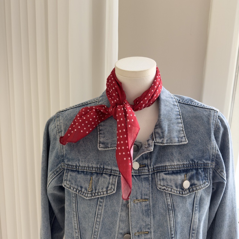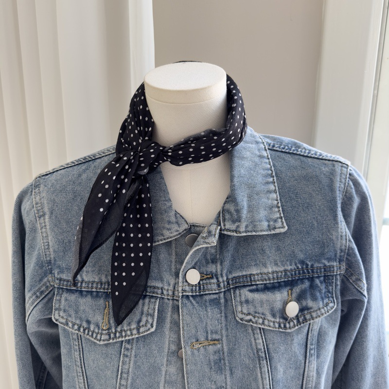 한국 스타일 레트로 블랙 도트 스카프 여성 프랑스 스타일 가을과 겨울 하이 엔드 스카프 틈새 예술적 스퀘어 스카프스토어 가기