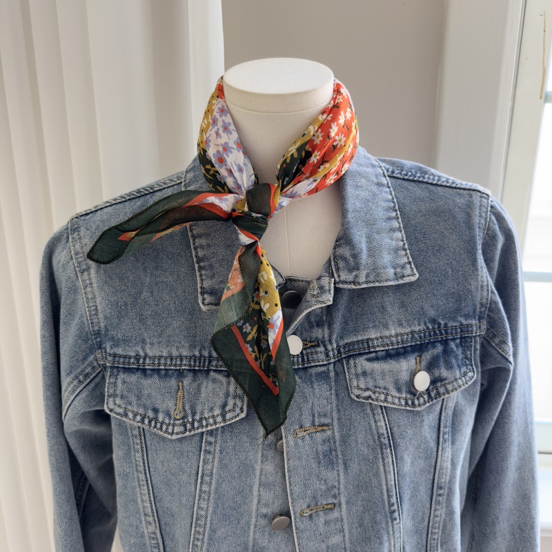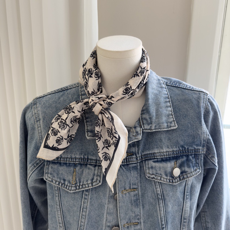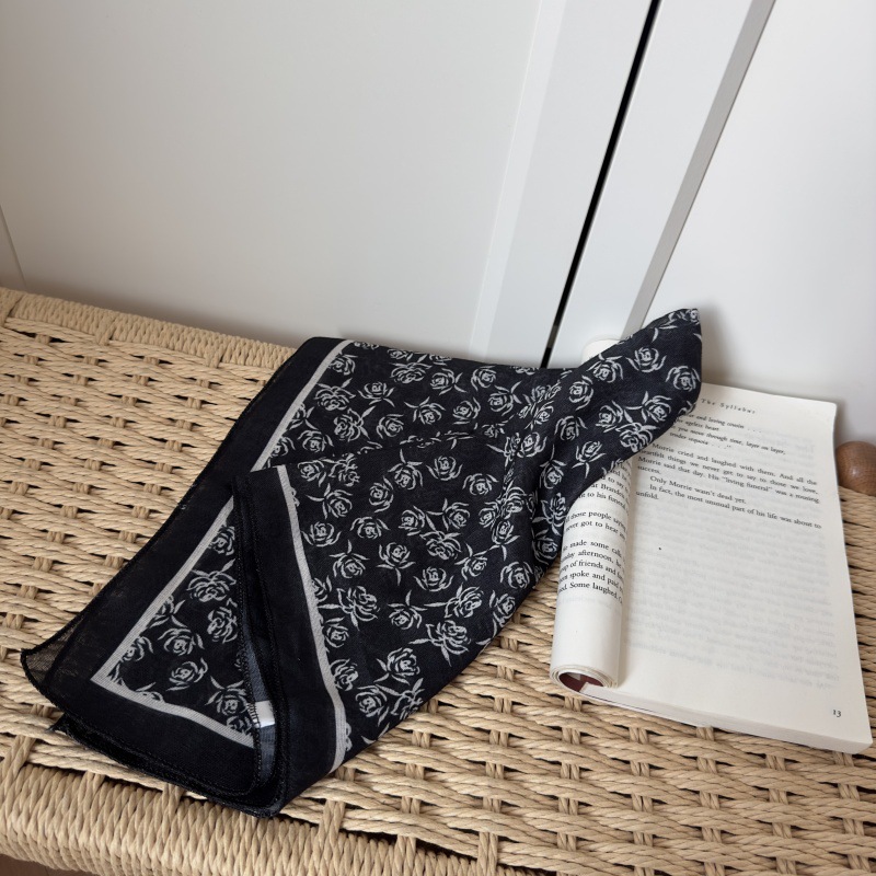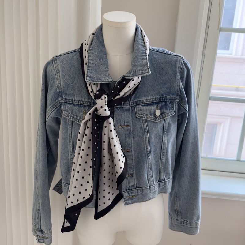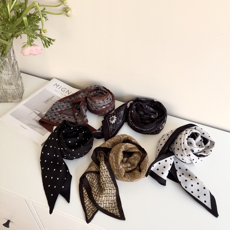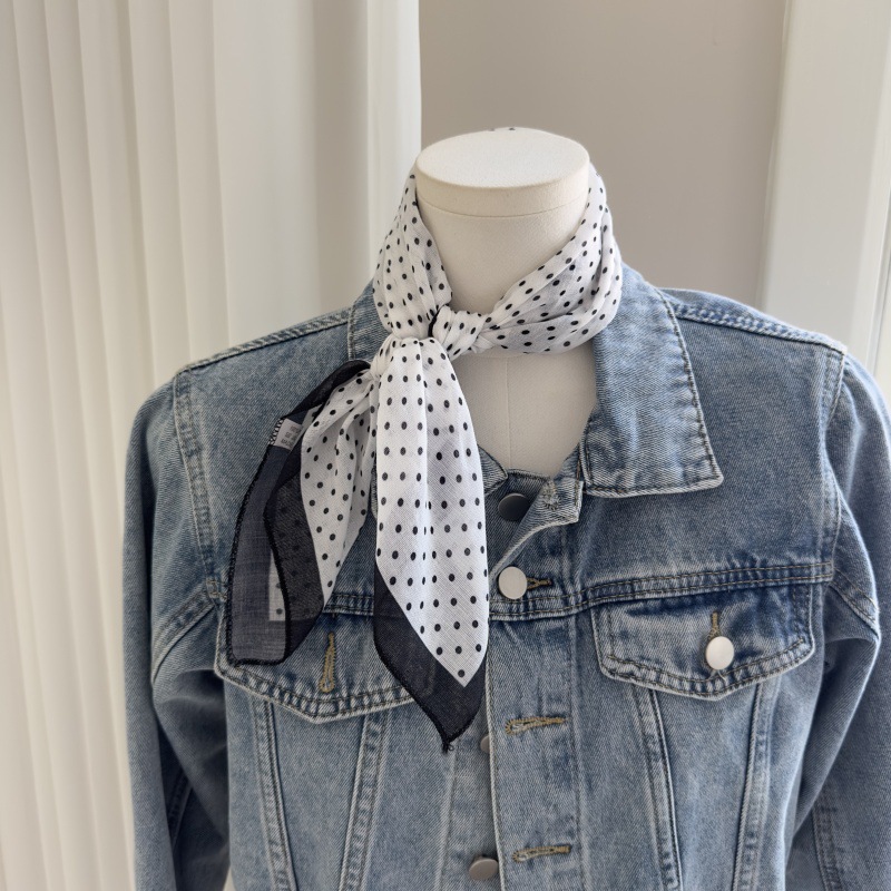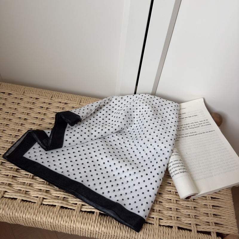 한국 스타일 레트로 블랙 도트 스카프 여성 프랑스 스타일 가을과 겨울 하이 엔드 스카프 틈새 예술적 스퀘어 스카프