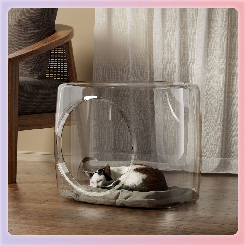 ✅가벼운 고급 가정용 고양이 둥지 애완 동물 투명한 고양이 둥지 통기성 입 작은 몸형 아이스 매트 담요 고양이 잠자는