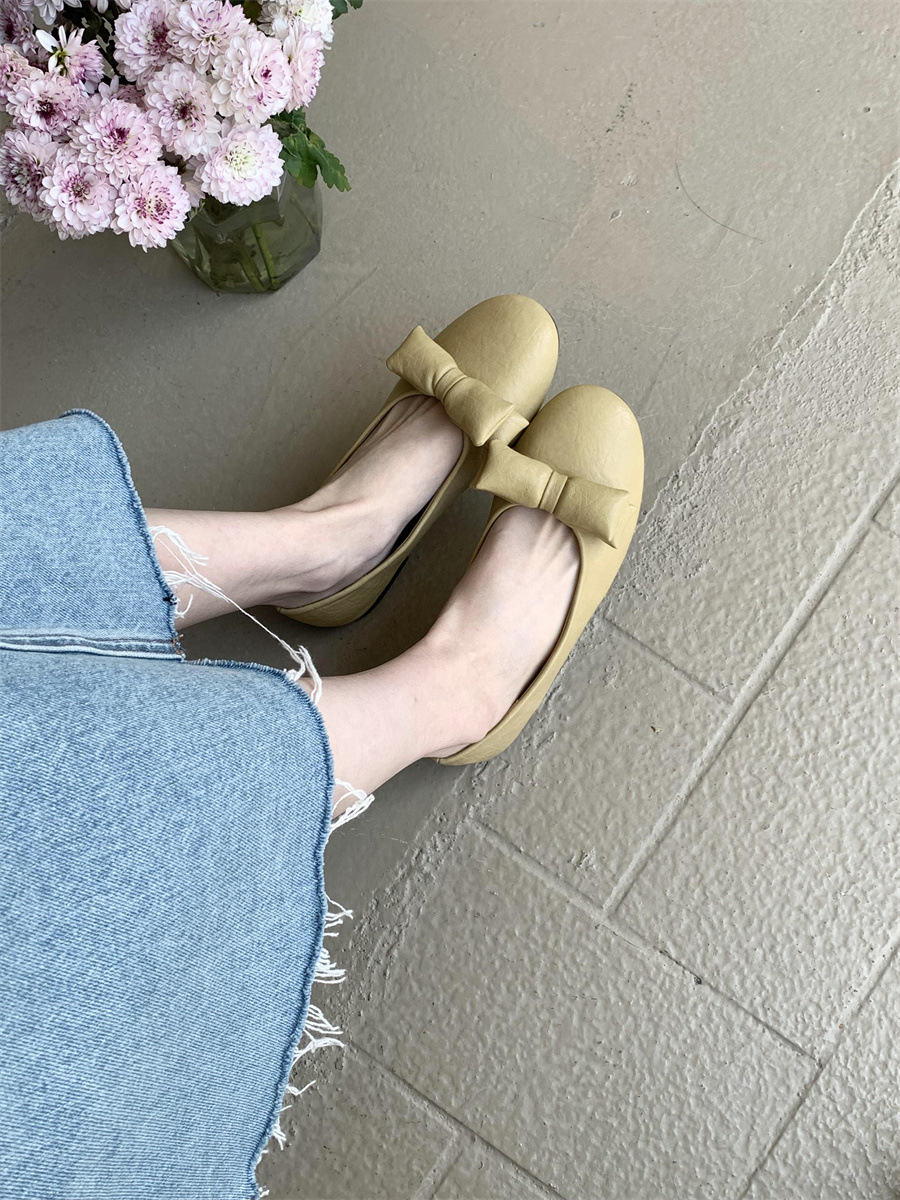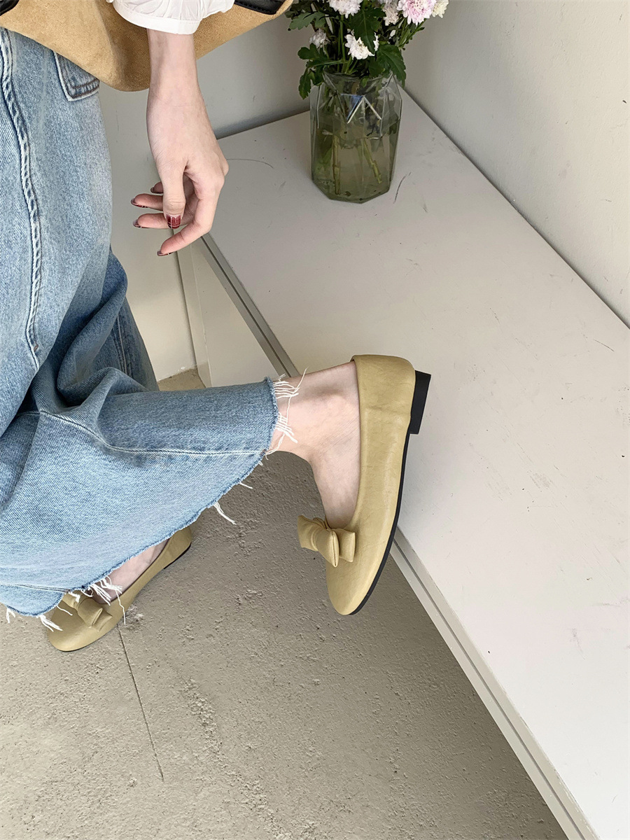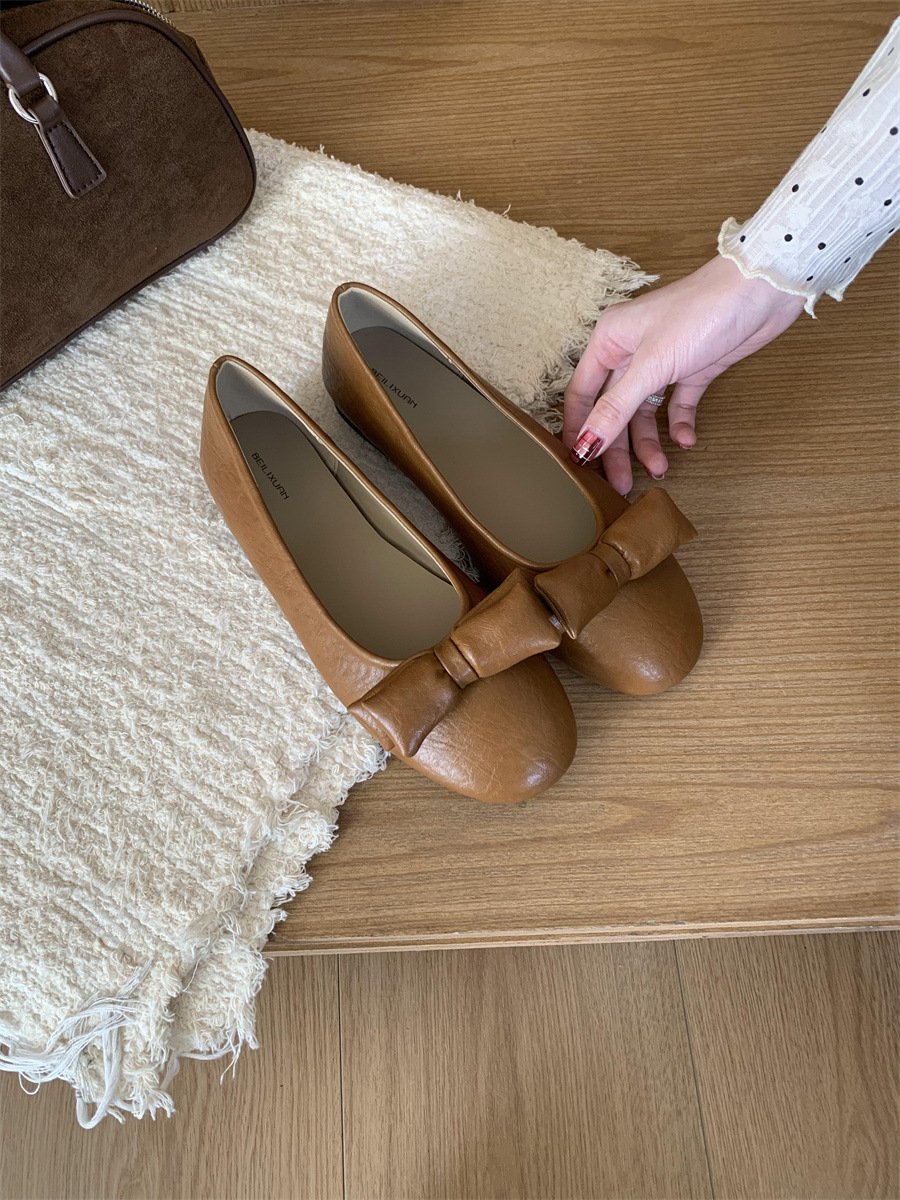 2025 새로운 라운드 발가락 플랫 싱글 레이어 신발 여성 원피스 간단한 새로운 프랑스 스타일 활 올 매치 통근자스토어 가기