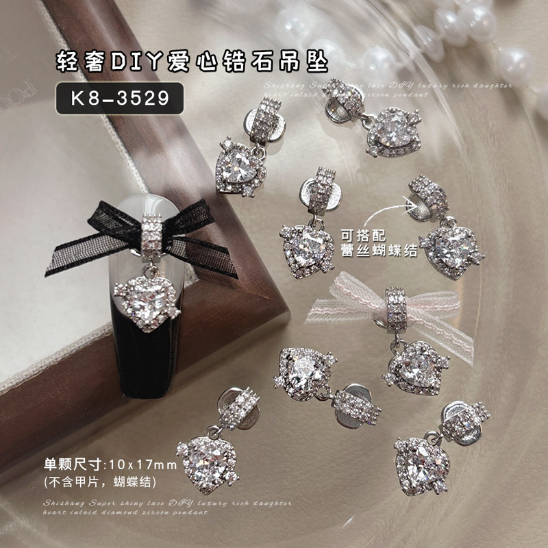 사랑 지르콘 펜던트 네일 아트 쥬얼리 라이트 럭셔리 리치 패밀리 골드 다이아몬드 일치하는 레이스 활 액세서리 네일 드릴스토어 가기