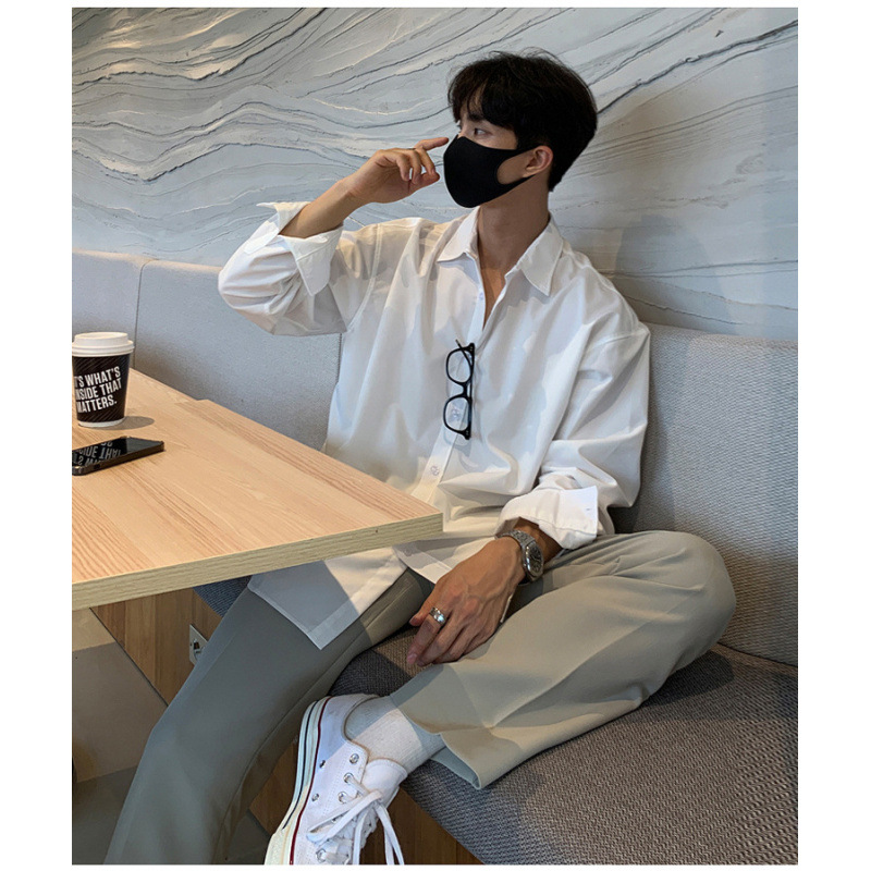 영국 유피 남성용 셔츠 남성용 긴팔 하이 엔드 센스 그레이 라이트 성숙한 스타일 세트 오버 사이즈 트렌디 이너 셔츠스토어 가기