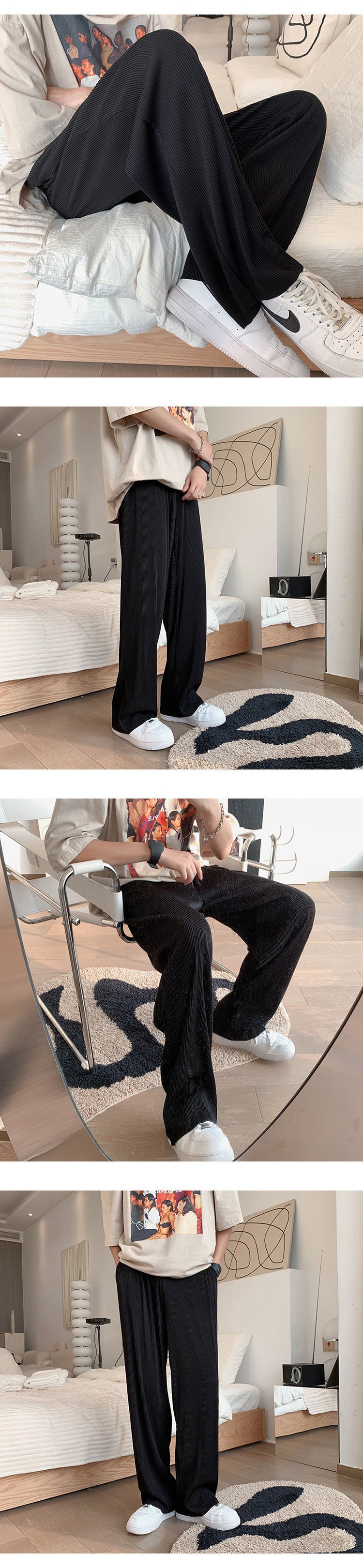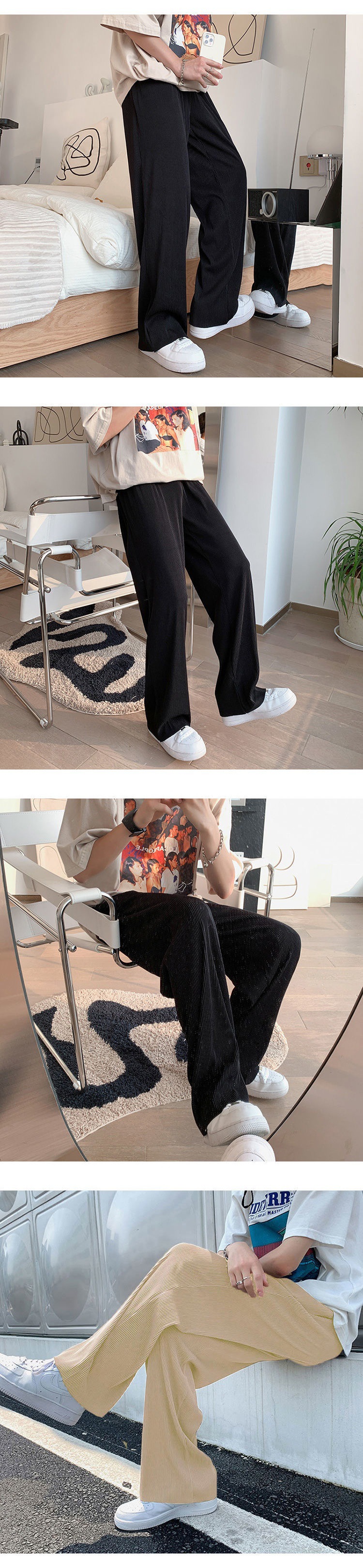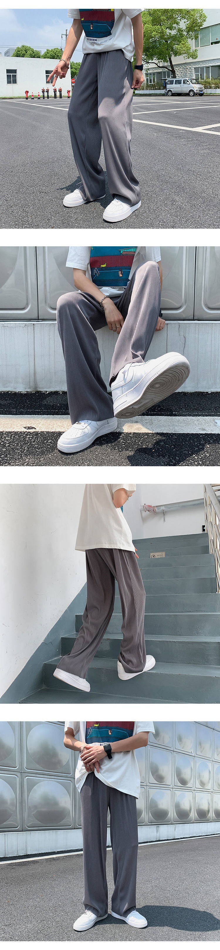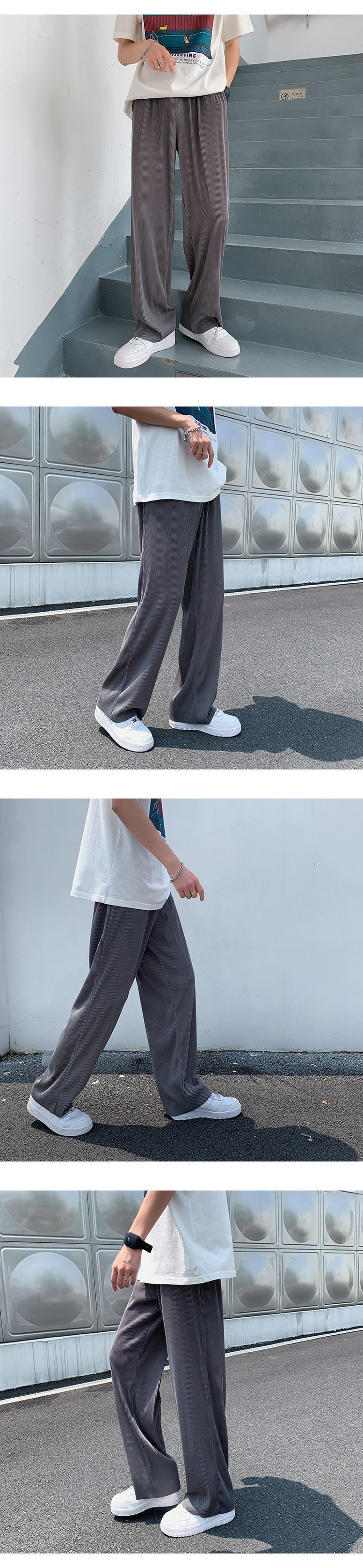2025 새로운 도착 트렌디 아이스 실크 Drapy 캐주얼 바지 남성용 느슨한 스트레이트 빠른 건조 와이드 레그 롱 바지 남성용 여름 얇은 바지스토어 가기