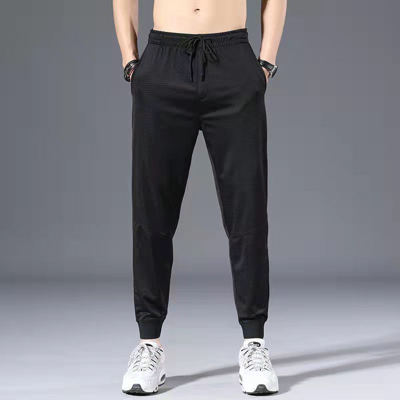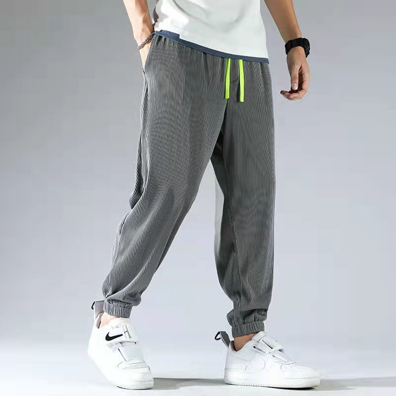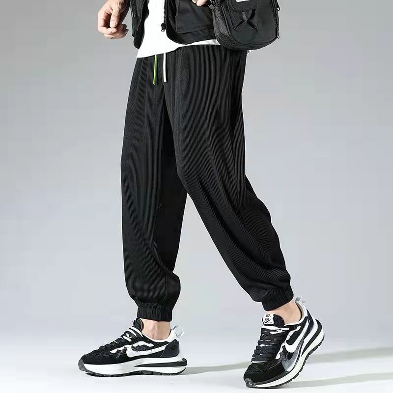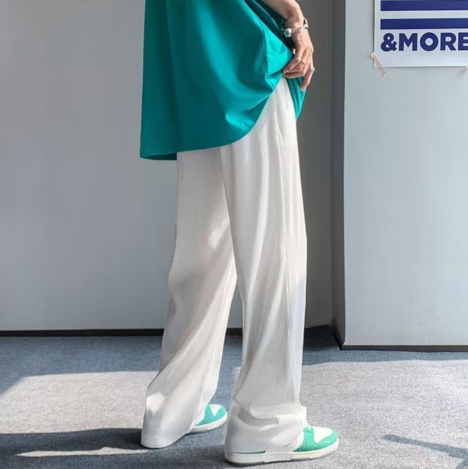 2025 새로운 도착 트렌디 아이스 실크 Drapy 캐주얼 바지 남성용 느슨한 스트레이트 빠른 건조 와이드 레그 롱 바지 남성용 여름 얇은 바지