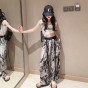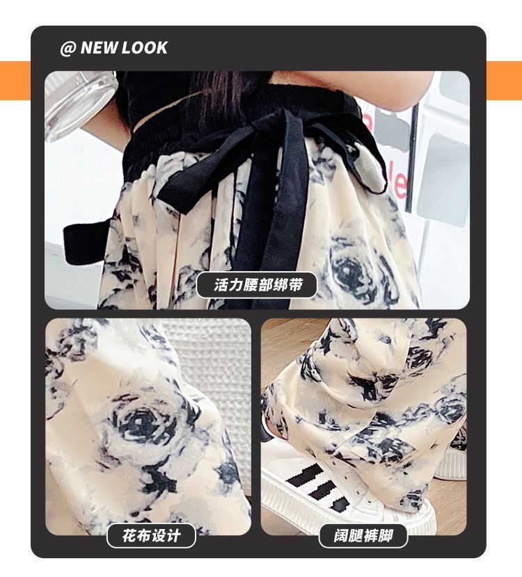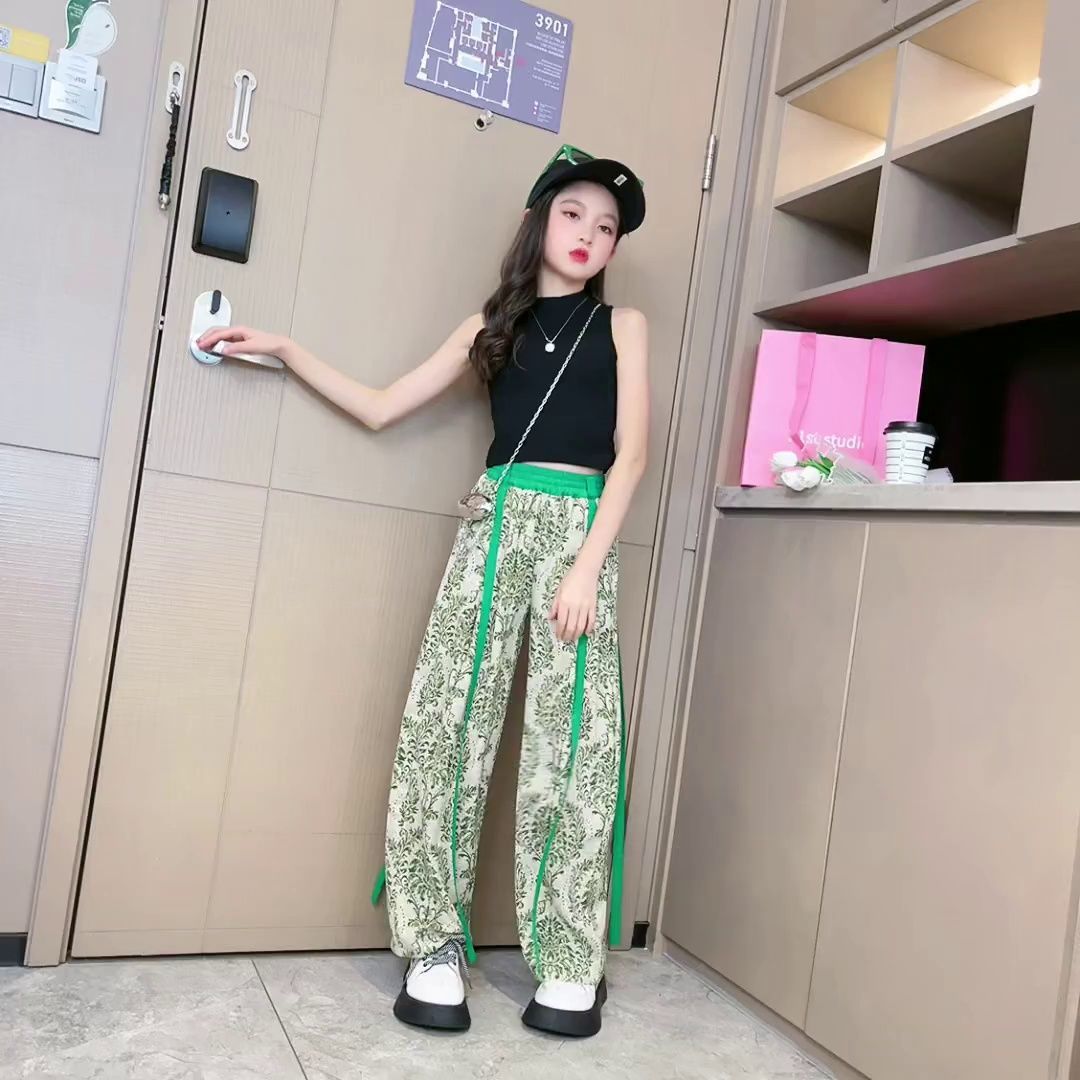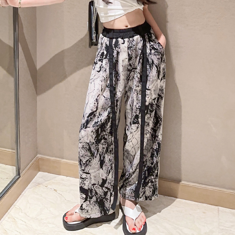 소녀 넓은 다리 바지 여름 한국 스타일 작은 소녀 얇은 스트랩 타이-염료 시원하고 세련된 착용 바지 도매 트렌디스토어 가기