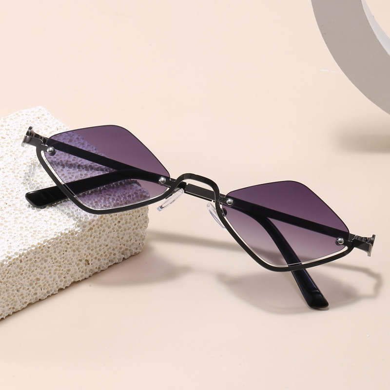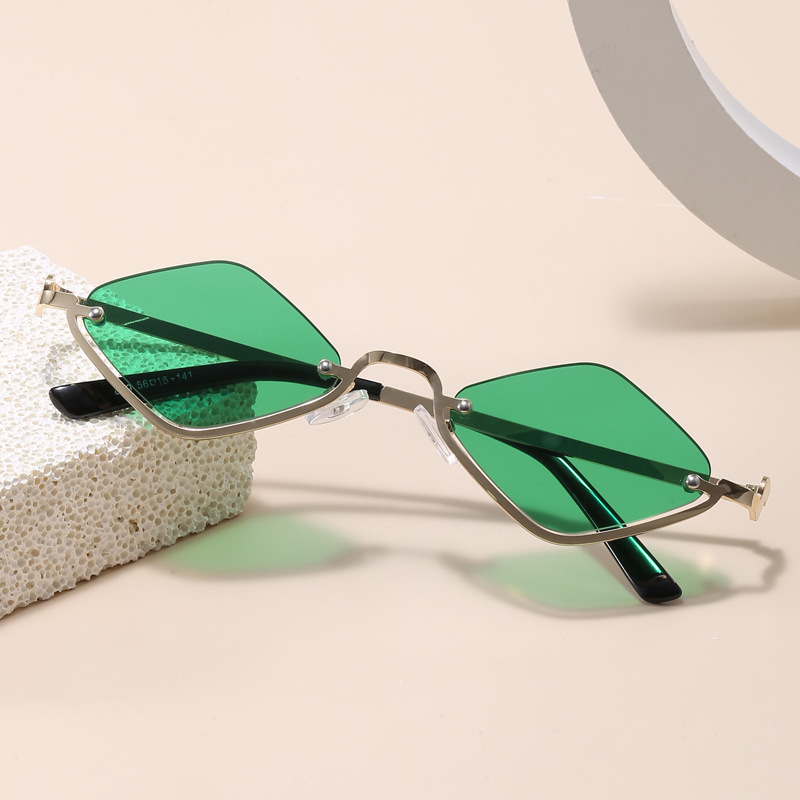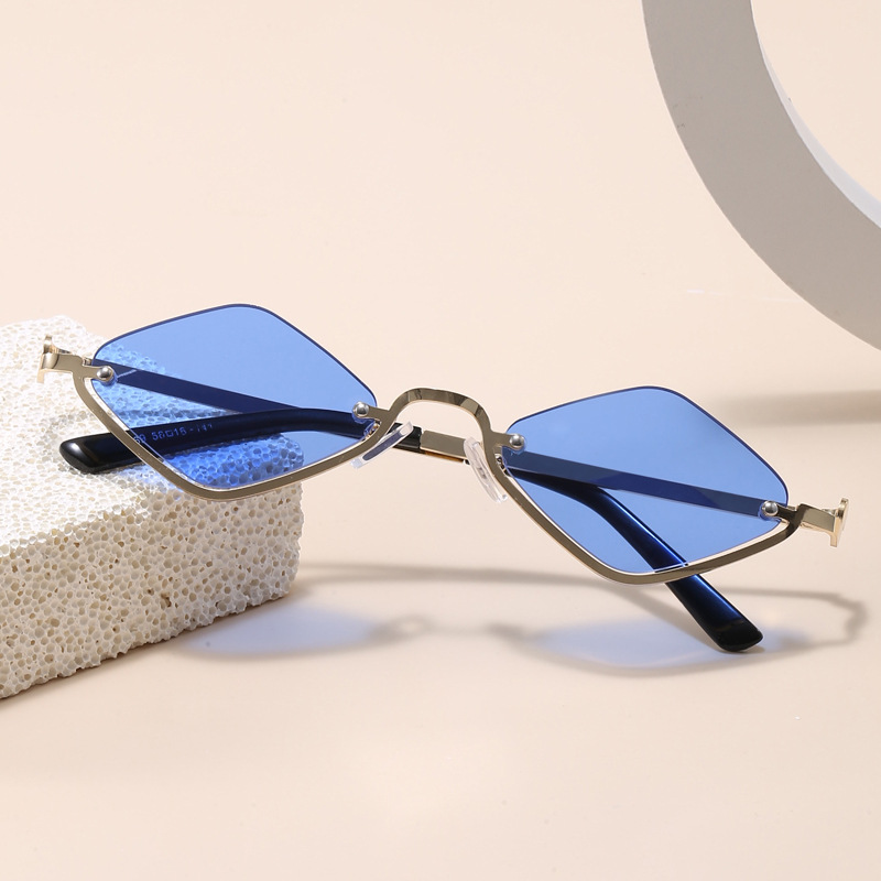 2025년 신상 유럽 및 미국 패션 트렌드 작은 프레임 금속 반테 마름모형 선글라스 고급스러운 선글라스 자외선 차단