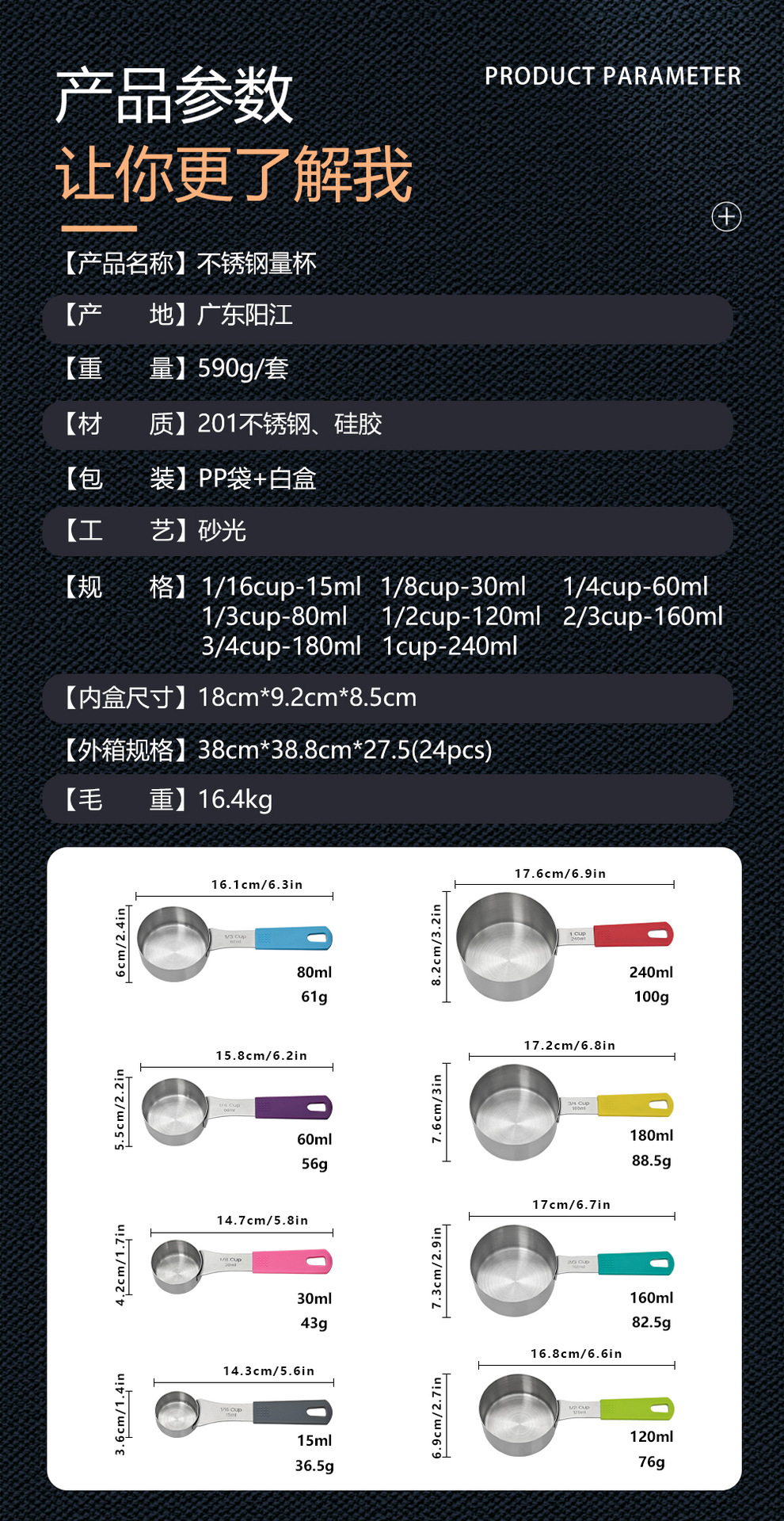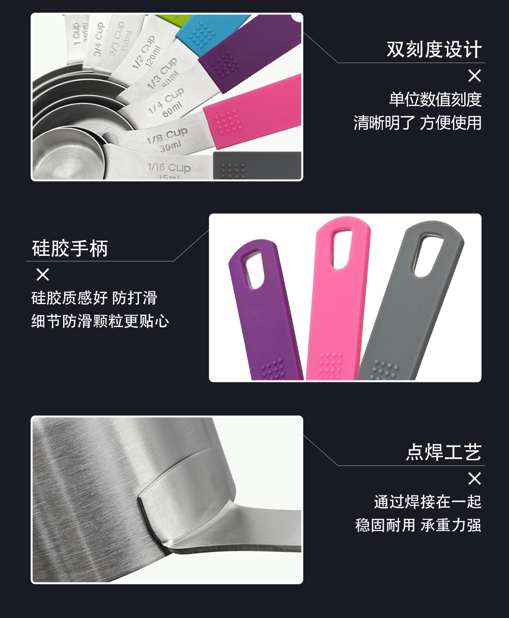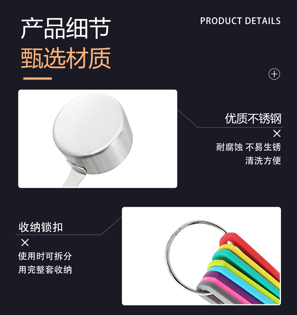 베이킹 도구 스테인레스 스틸 측정 컵 8 조각 세트 스케일 실리콘 핸들 조미료 커피 우유 측정 컵 스푼 세트 측정