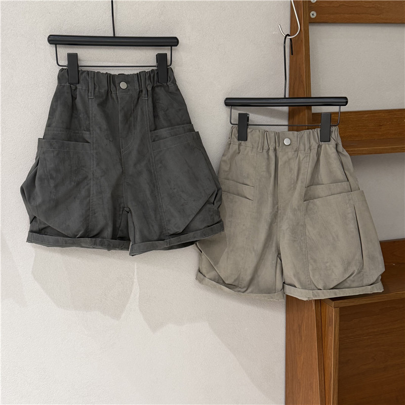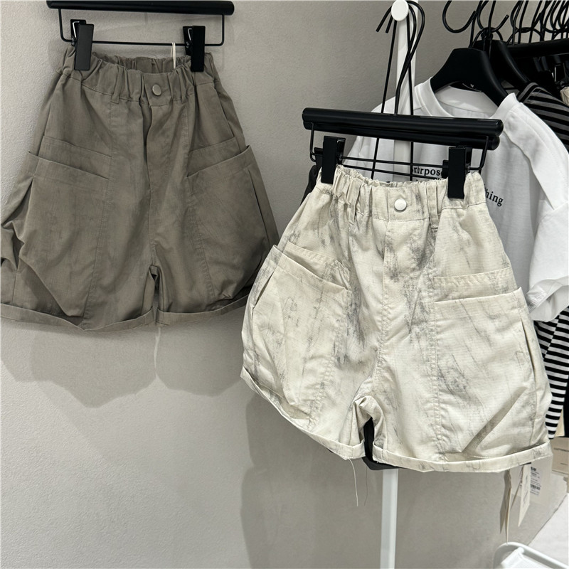 25 어린이 여름 새 소년 소녀 아기 한국 스타일 서양식 오픈 허리 사이드 포켓 캐주얼 반바지 바지 유행 어린이 바지스토어 가기