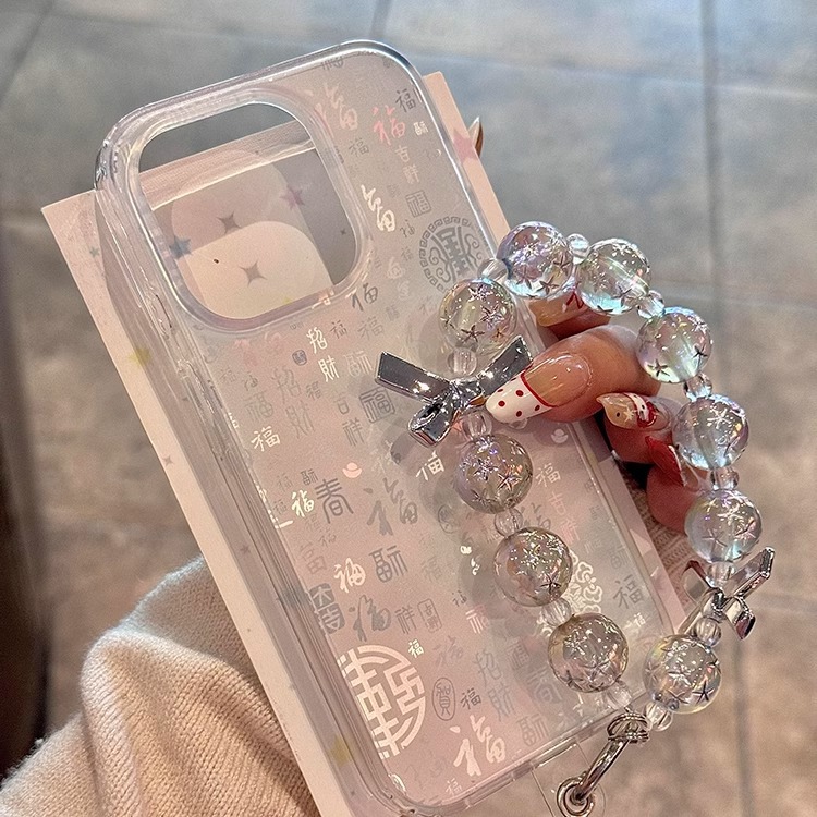 • 투명 [IMDBFT04 전체 화면 축제 텍스트 축복] + INS 실버 전기 도금 활 크리스탈 끈