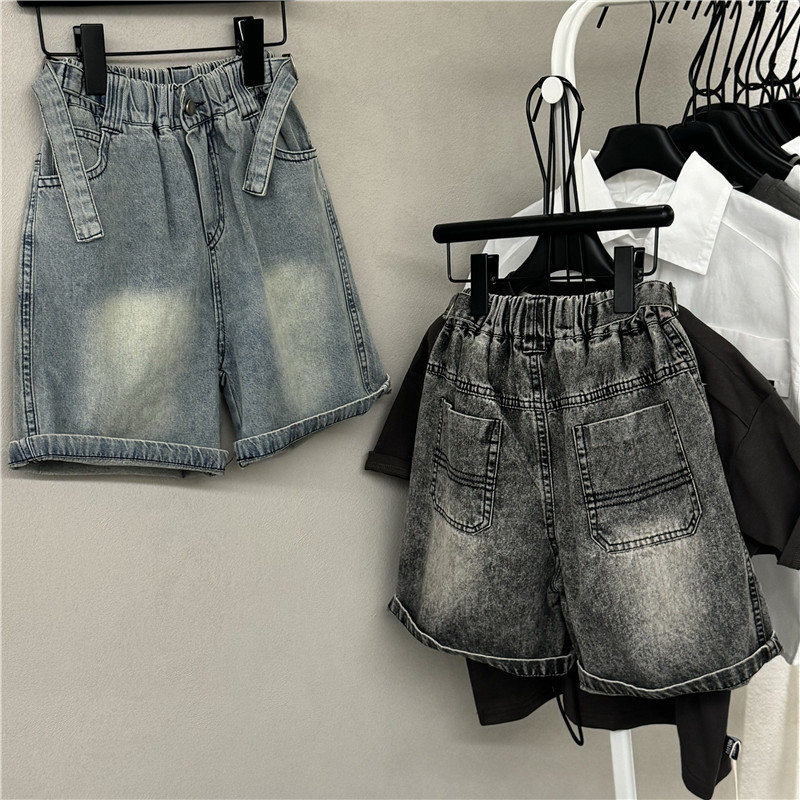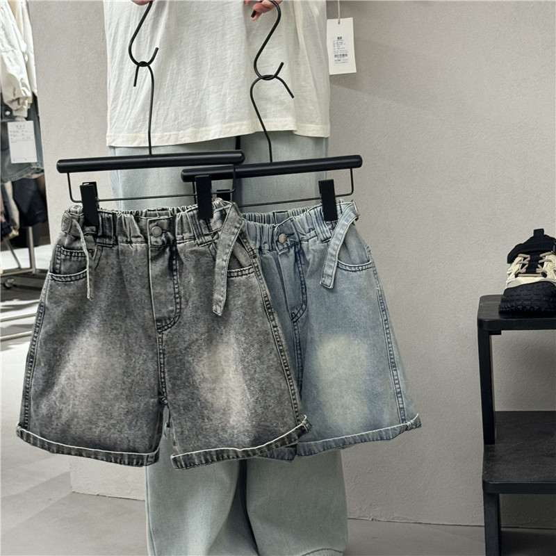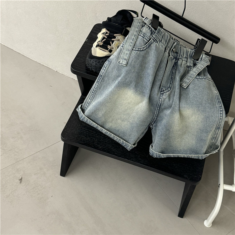 소년 소녀 아기 한국 스타일 외국 스타일 25 여름 새로운 어린이 오픈 허리 데님 반바지 캐주얼 바지 유행 어린이 바지스토어 가기