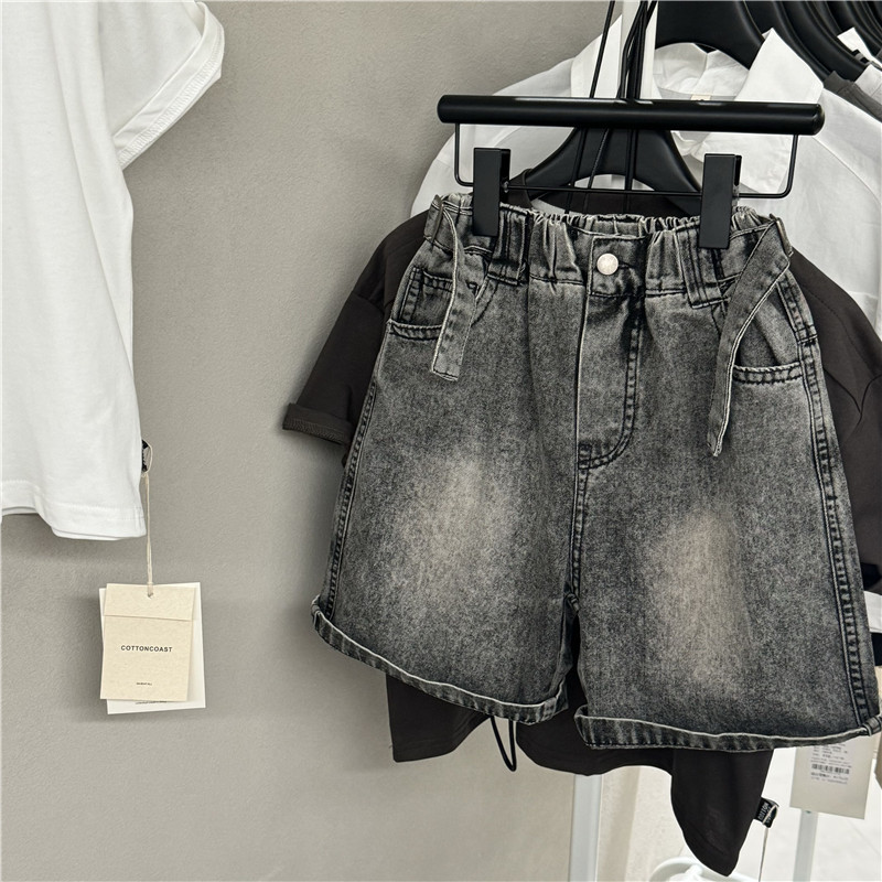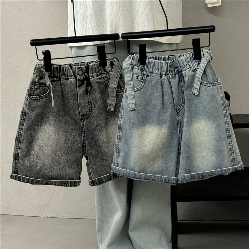 소년 소녀 아기 한국 스타일 외국 스타일 25 여름 새로운 어린이 오픈 허리 데님 반바지 캐주얼 바지 유행 어린이 바지