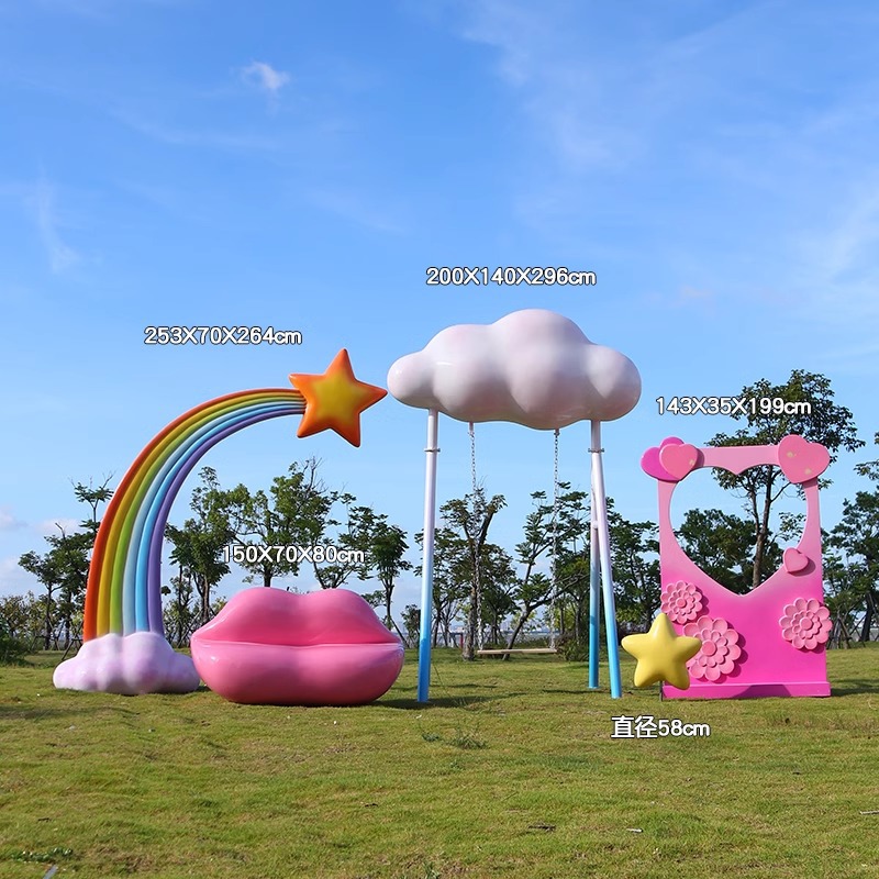 인터넷 레드 클라우드 스윙 사다리 사진 프레임 푸쉬카드 장식품 조각 풍경 풍경 풍경 잔디밭 쇼핑몰 장식 캠프 야외