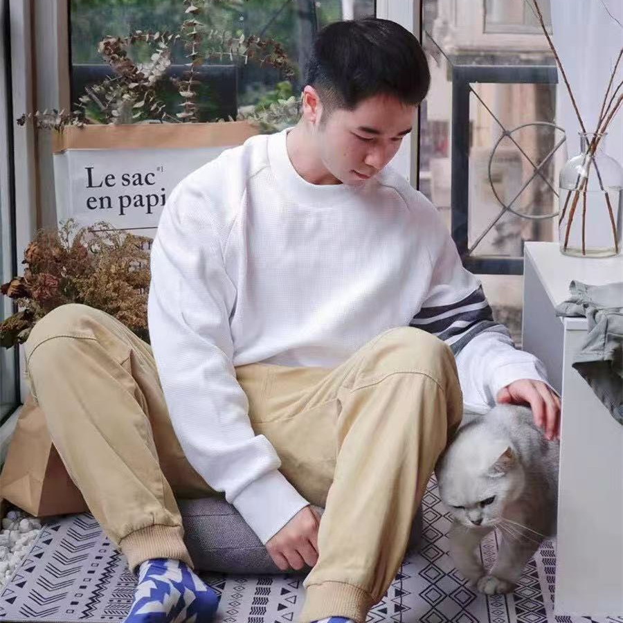 TB 25 봄과 가을 와플 크루 넥 스웨트 셔츠 간단한 대학 스타일 하이 퀄리티 긴 소매 국경 간 라이브 방송