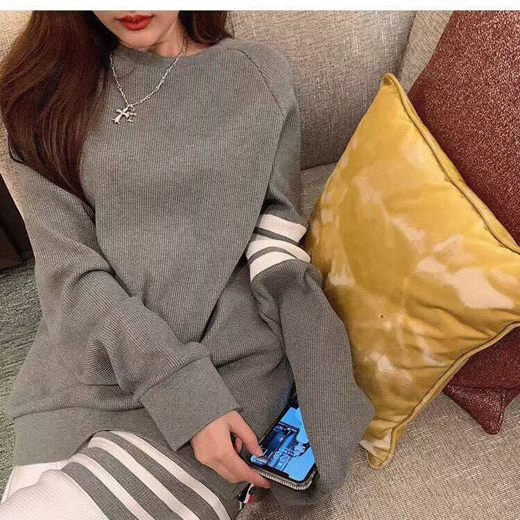 TB 25 봄과 가을 와플 크루 넥 스웨트 셔츠 간단한 대학 스타일 하이 퀄리티 긴 소매 국경 간 라이브 방송스토어 가기