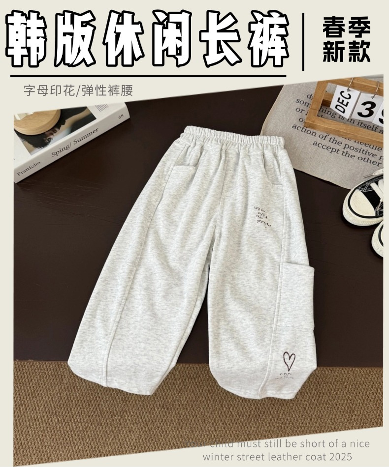 소년 바지 봄과 가을 2025 새로운 아동복 중소 어린이 한국식 스웨트 바지 소년 기모 스포츠 바지 봄옷