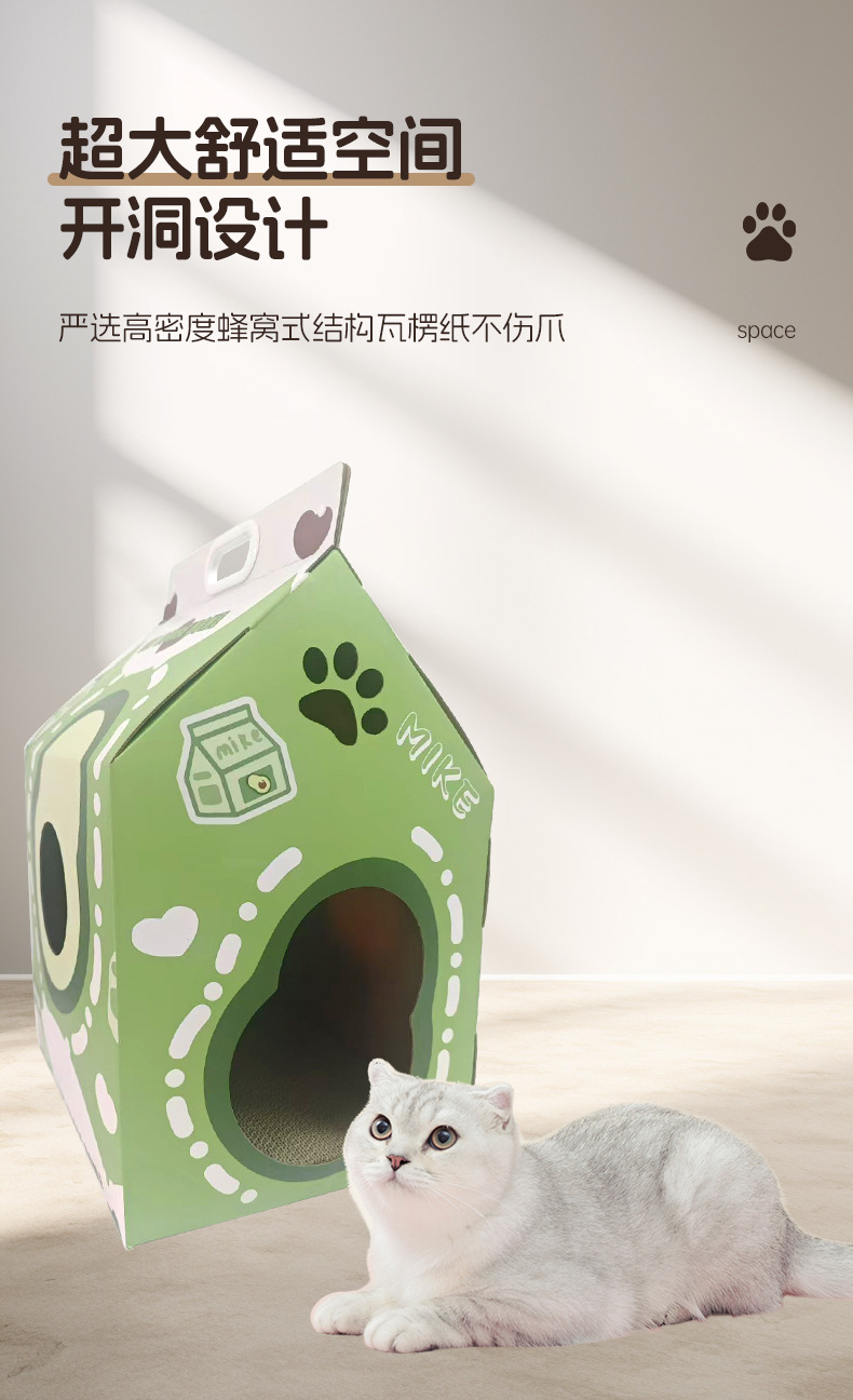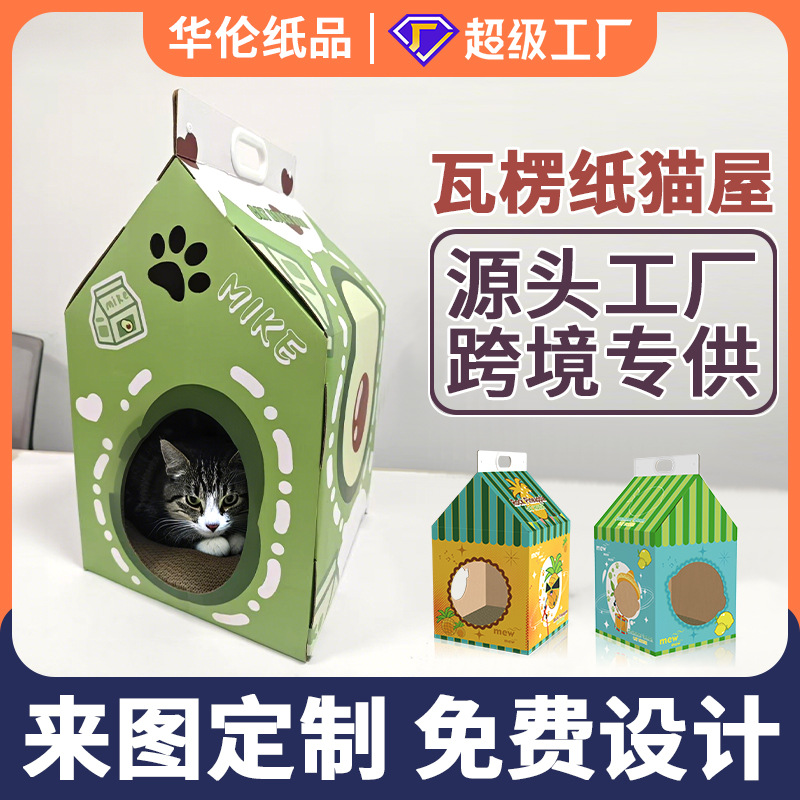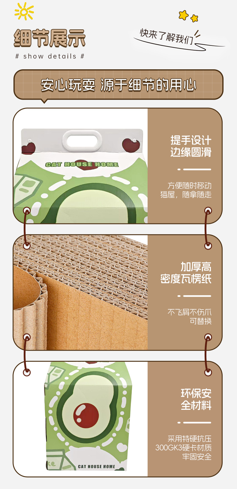 맞춤형 아보카도 골판지 고양이 스크래치 보드 고양이 집 일체형 종이상자 내구성 있는 애완동물 용품 스크래치 가능 및 수면 가능 고양이 집스토어 가기